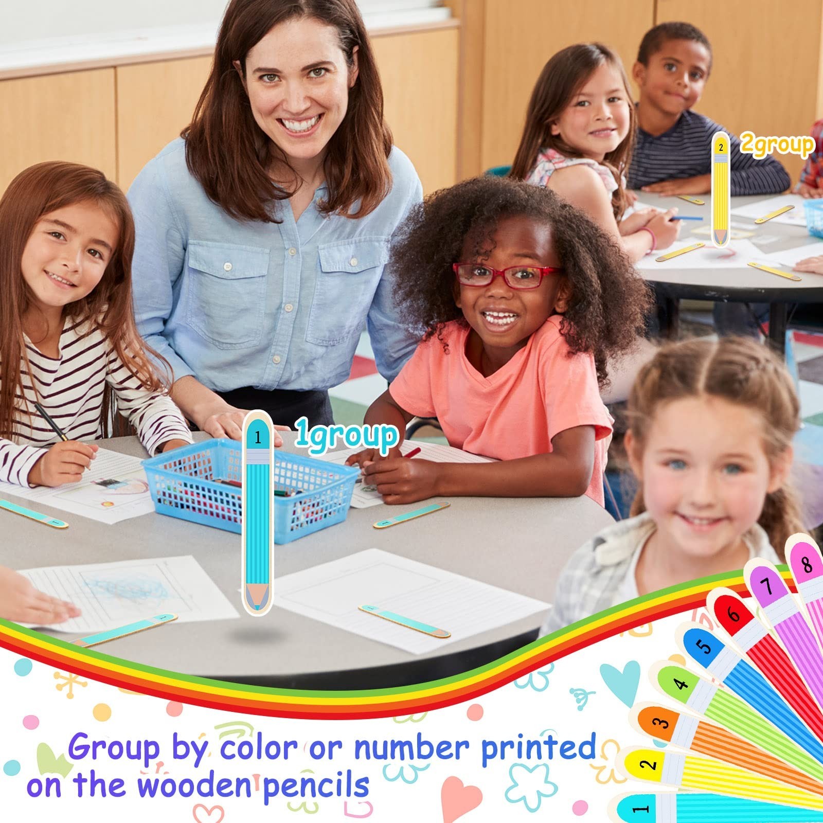 как выглядит Qualirey 64 Pieces Flip Name Sticks Student Grouping Pencils Multicolor Penci... фото