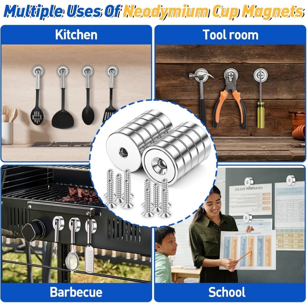 4 Pc round Base Cup Magnet 30LBS Strong Rare Earth Magnet Heavy Duty