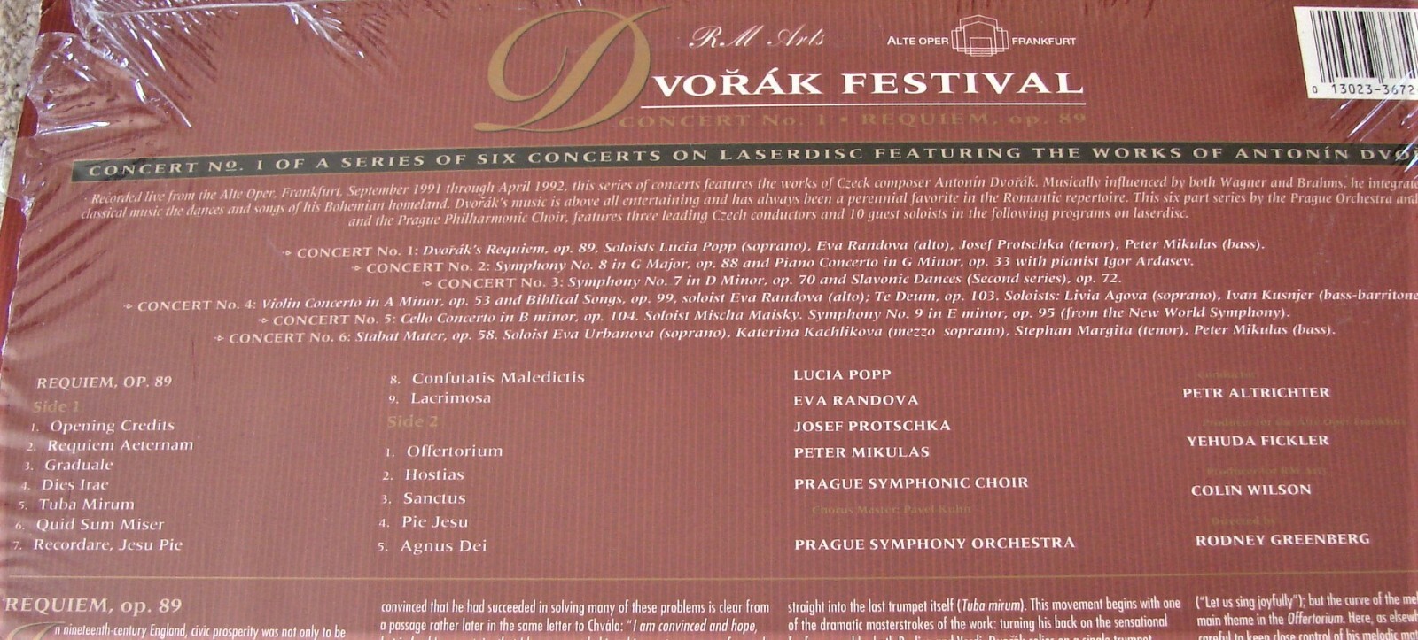 Antonin DVORAK Festival Concert No.1 REQUIEM Opera 89 Prague Orchestra LASERDISC
