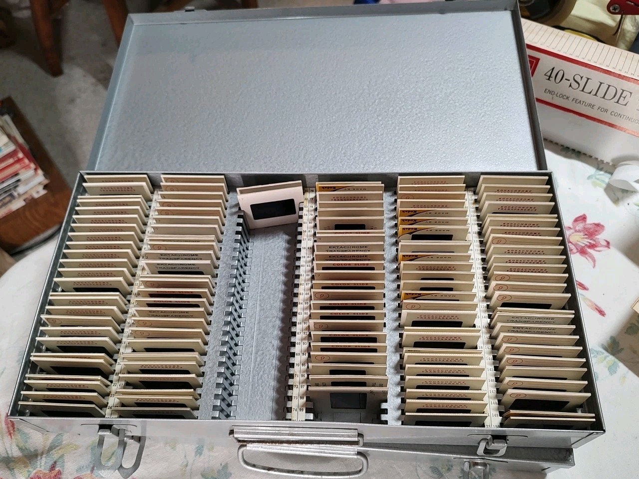 Lot of 2 Slide File storage boxes Vintage Gray Metal Each Holds 150 Slides With