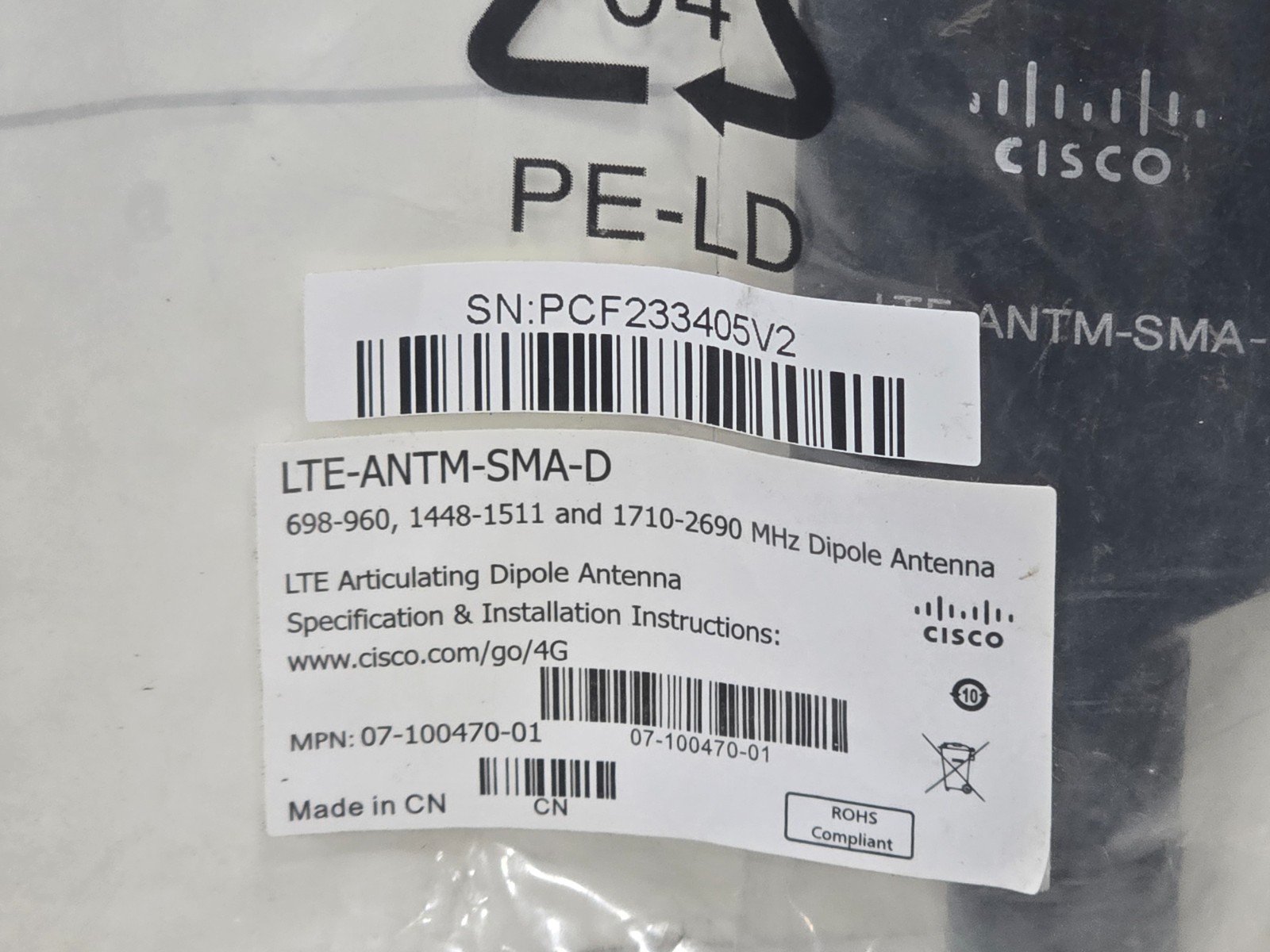 Cisco LTE-ANTM-SMA-D Articulating Dipole Antenna 698 2690 MHz SMA 07-10047