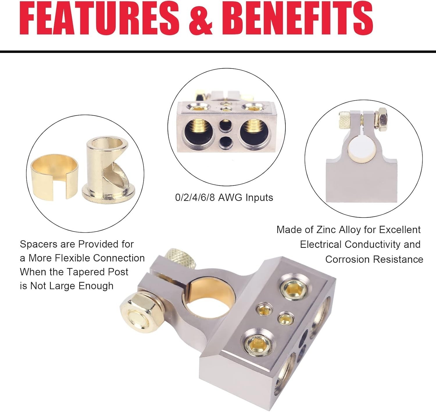 как выглядит Battery Terminal Connectors, 0/2/4/6/8 AWG Battery Terminals,Heavy Duty Top P... фото