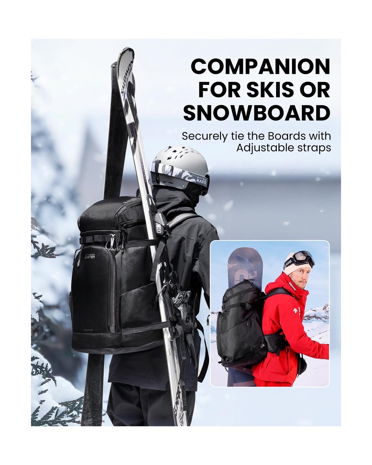 OutdoorMaster Ski Boot Bag, 65L Snowboard Boots Travel Backpack for Helmet, S...