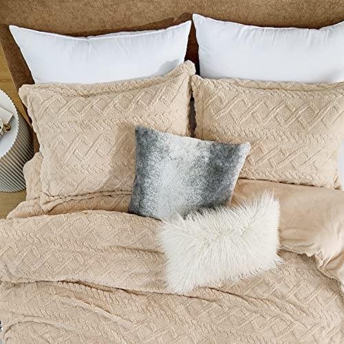 Fluffy Comforter Cover - Faux Fur Tufted Duvet Cover Size Plush Queen Beige