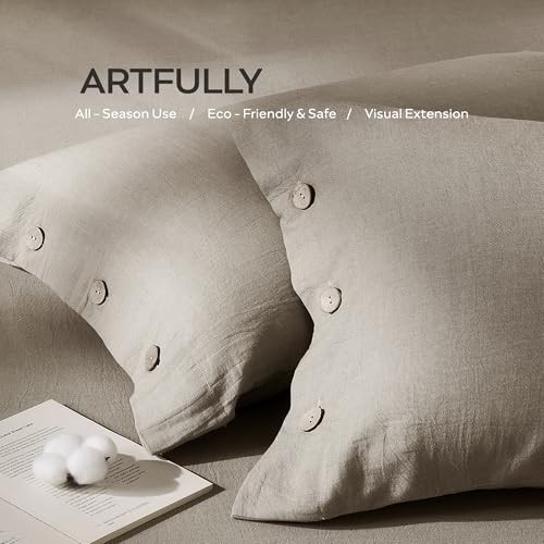 100 Washed Cotton Standard Pillowcases Set, 2 Pack Standard 20 26 02-taupe