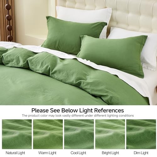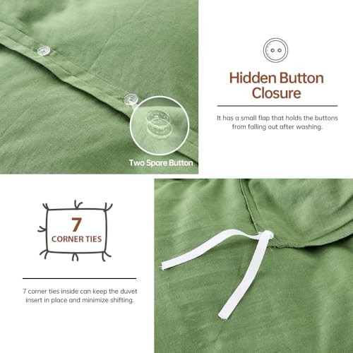 French Linen Duvet Cover Set 68 x 86- 2 Pieces 1 Comforter Twin Khaki Green