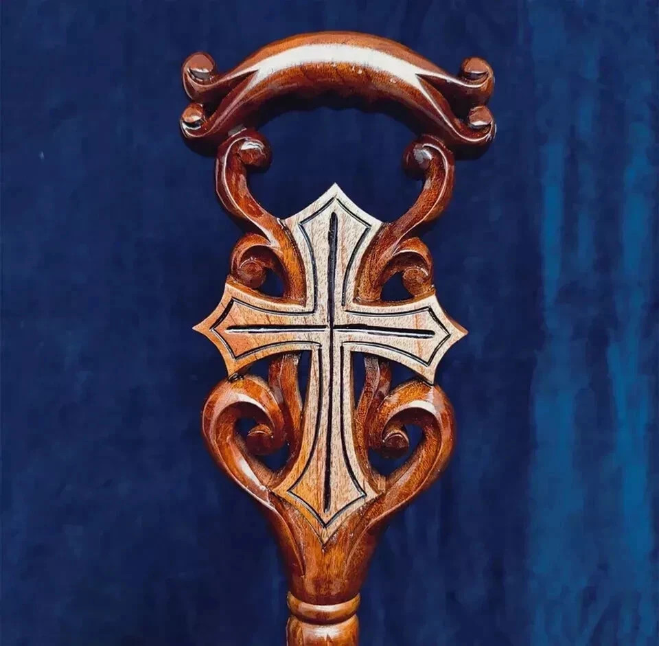Wooden Walking Handcrafted Cane Intricate Wooden Cane Christian Cross Design