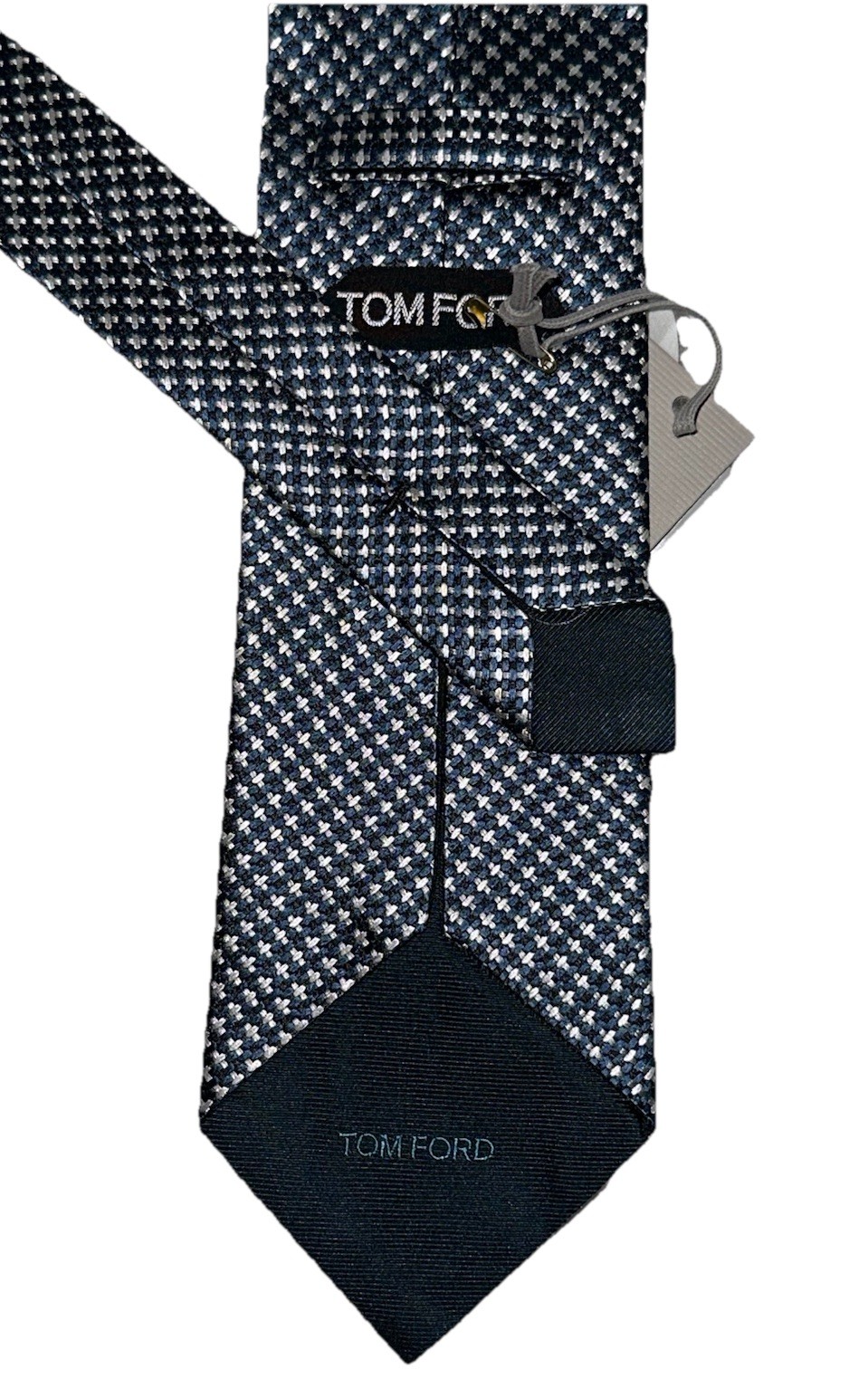 270 NWT TOM FORD Navy w/ White Cross geometrics 3.6 woven silk neck Tie Italy