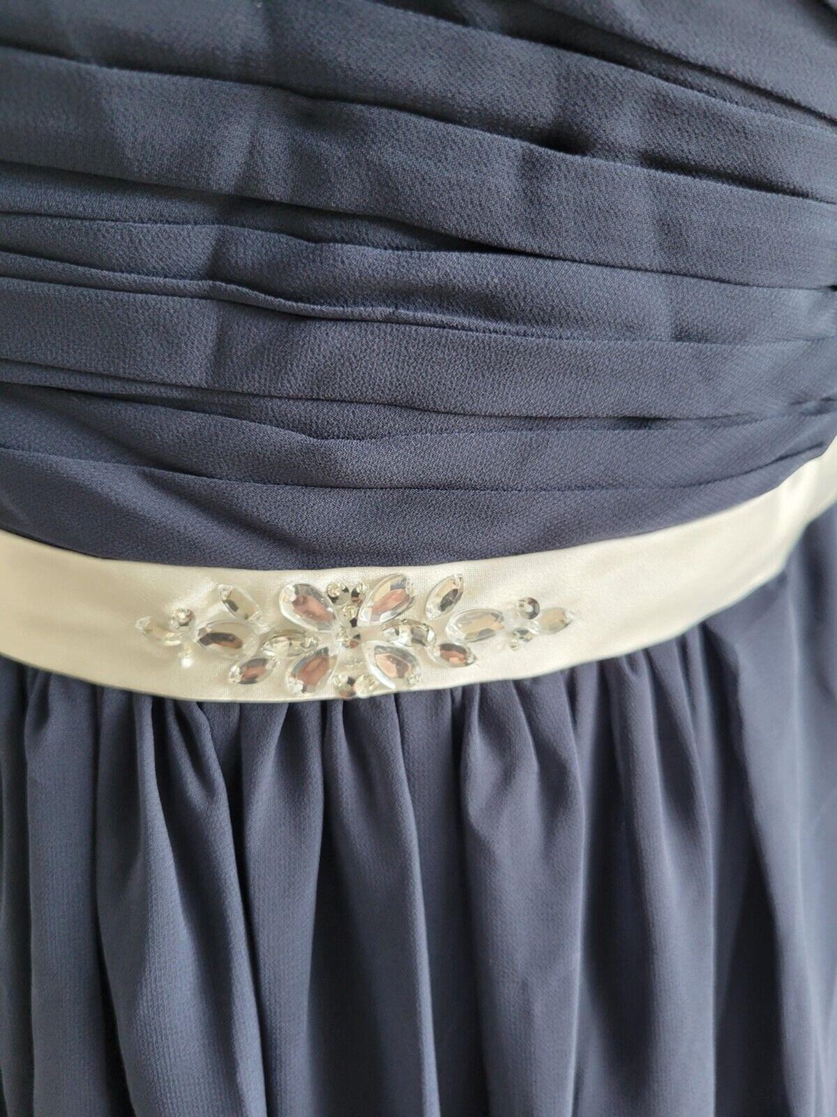 как выглядит Bill Levkoff Chiffon Sleeveless A-Line Strapless/Halter Navy Ivory New Sz 4 фото