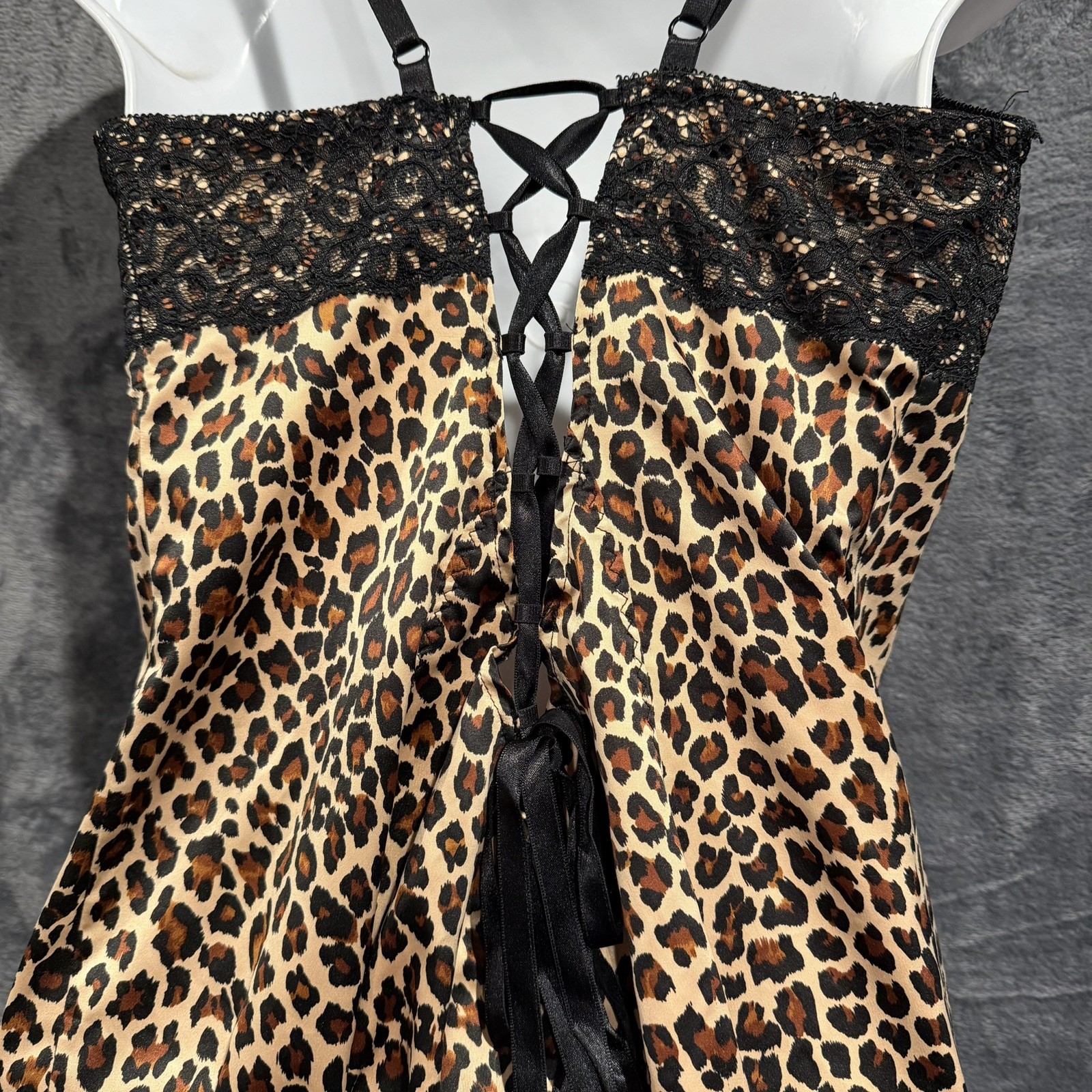 Frederick's of Hollywood Corset Top Medium Satin Animal Print Padded Lace Up