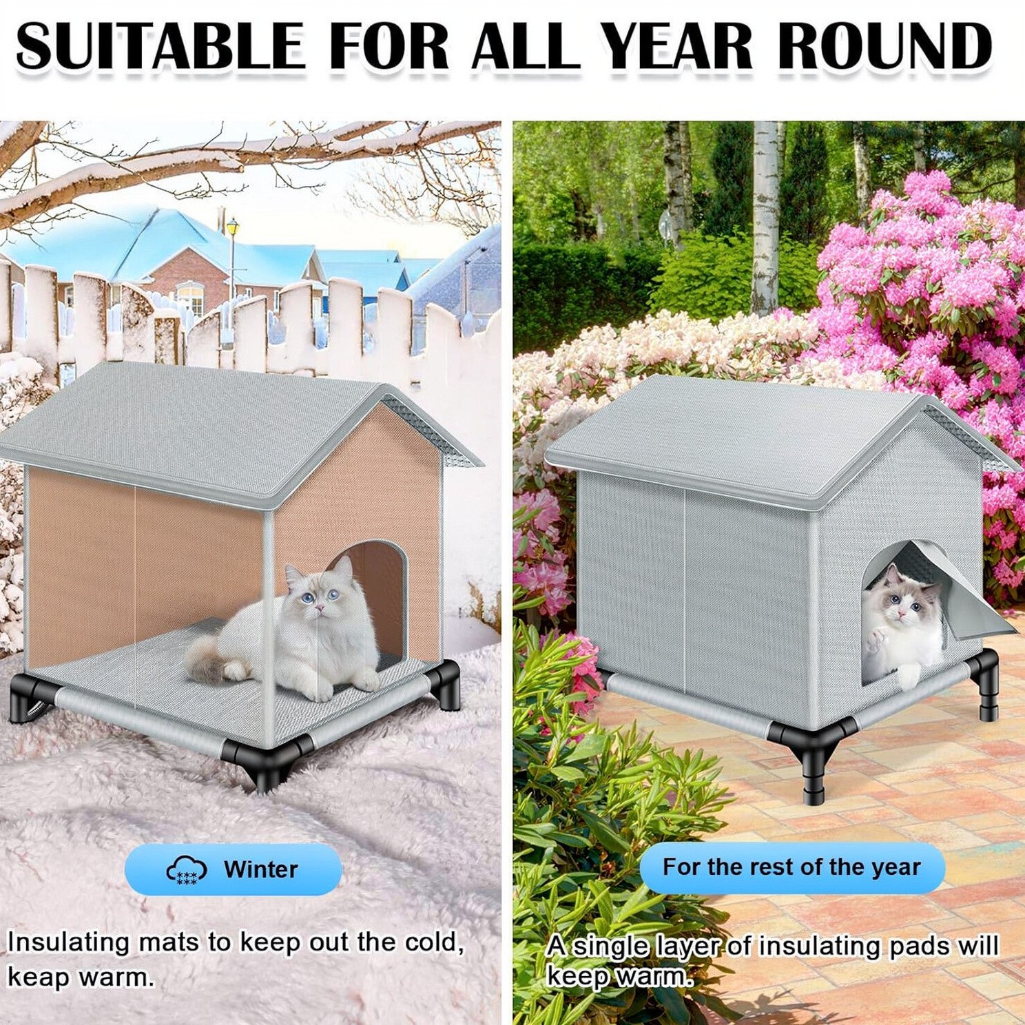Waterproof Insulated Cat Shelter Elevated Winter Cat House for Outdoor Strays