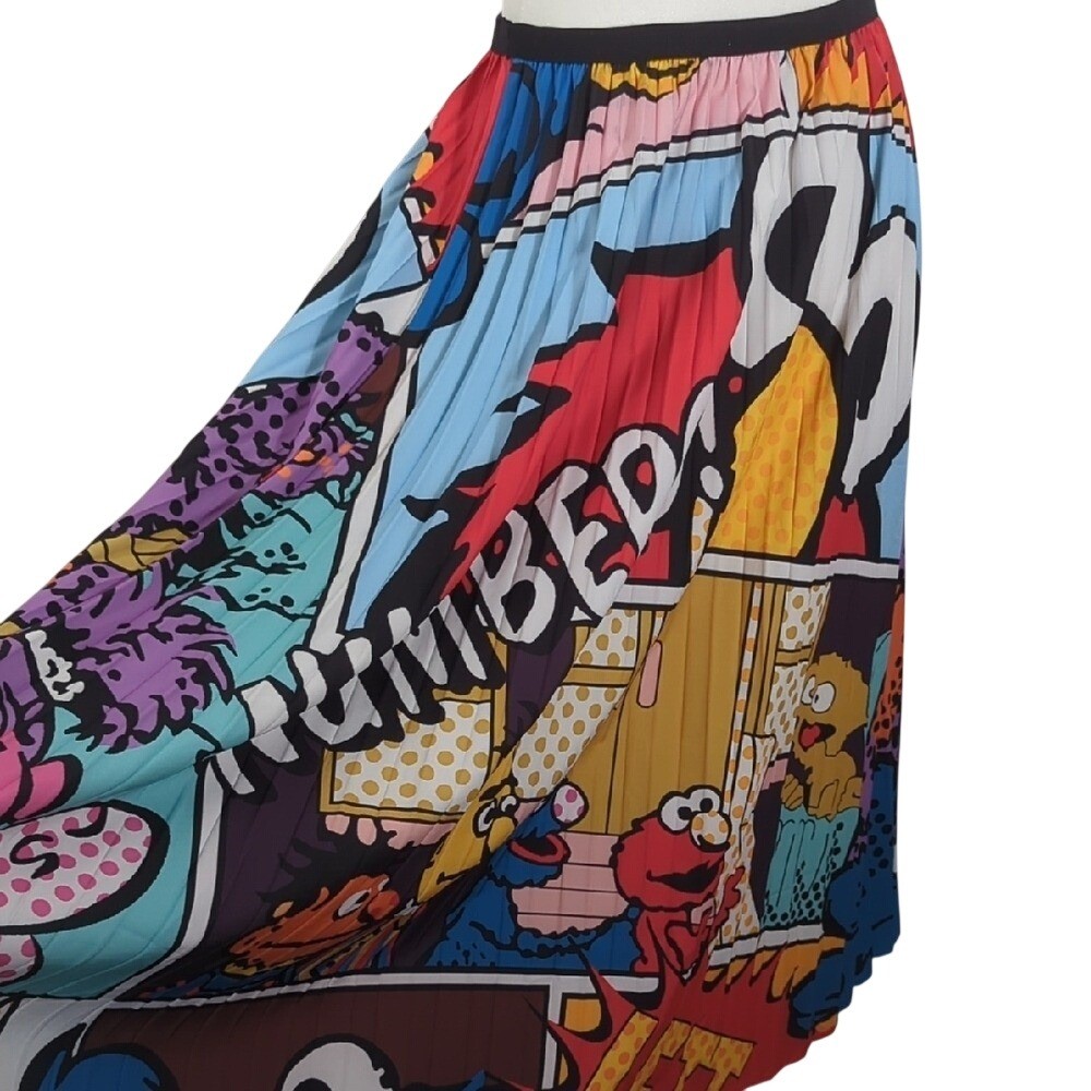 Sesame Street Elmo Pop Art Colorful Pleated Midi Skirt Blogger Fave Size Large