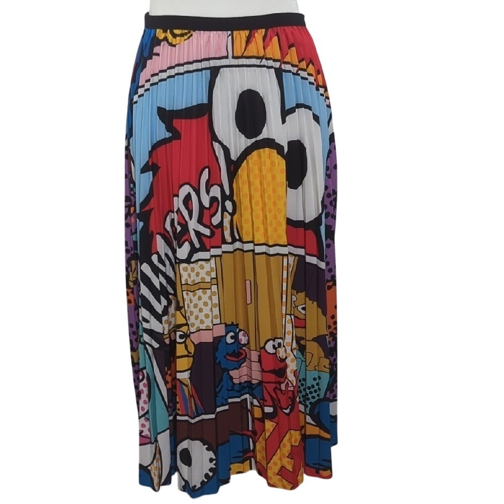 как выглядит Sesame Street Elmo Pop Art Colorful Pleated Midi Skirt Blogger Fave Size Large фото