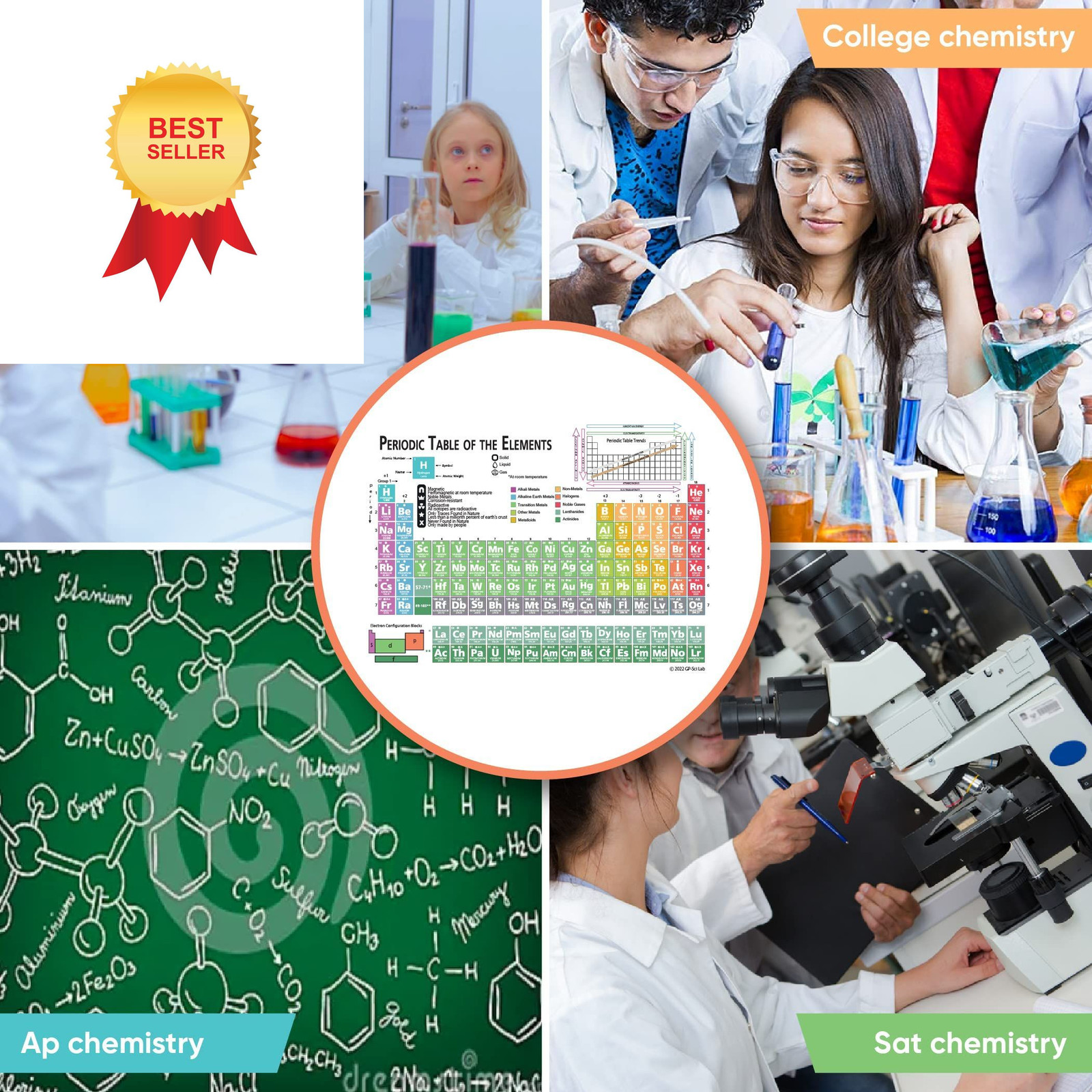 Zastic Laminated Periodic Table of Elements Chart - 12L x 9W, Multicolor
