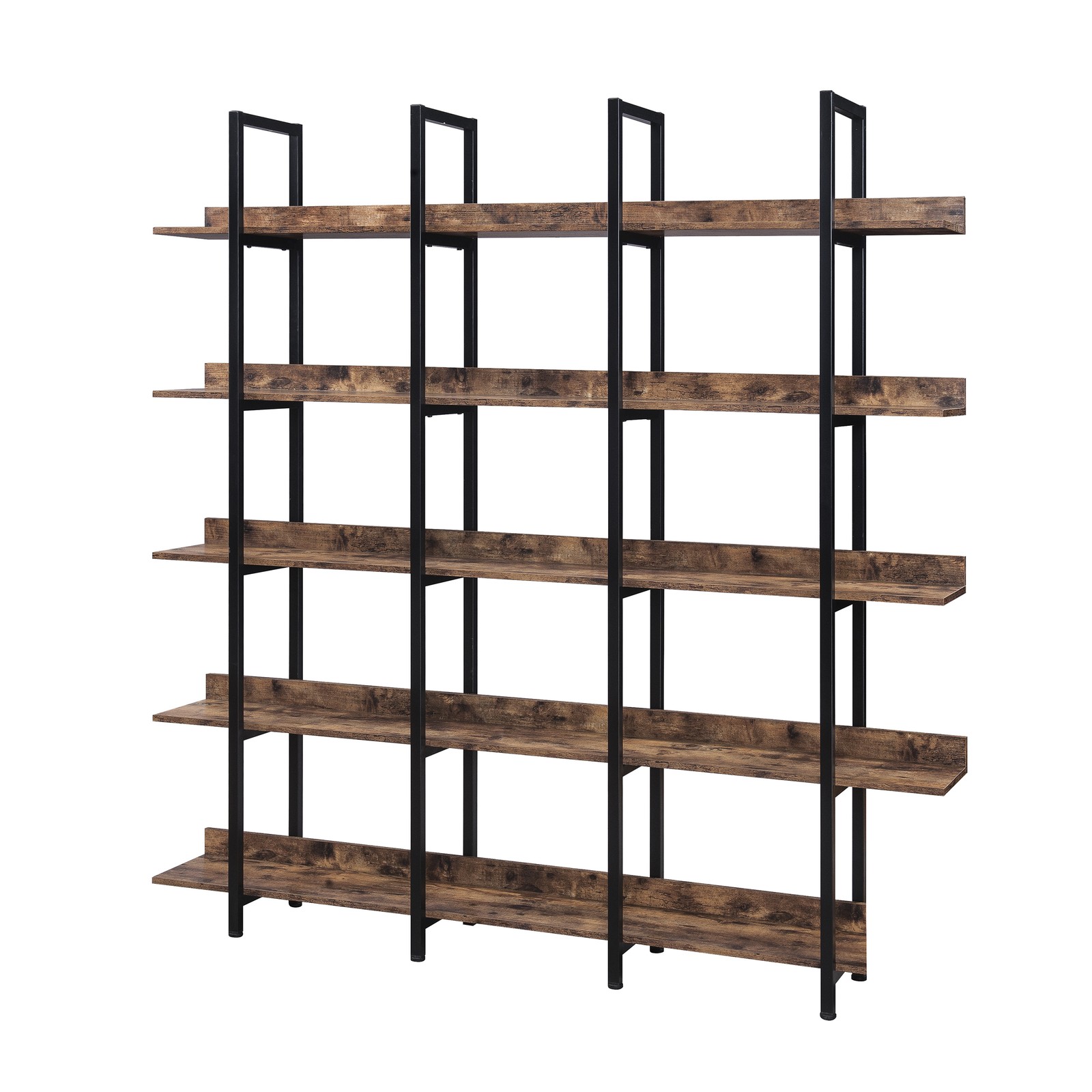 5 Tier Industrial Bookcase Home Office Open Bookshelf Open Shelves Metal Frame