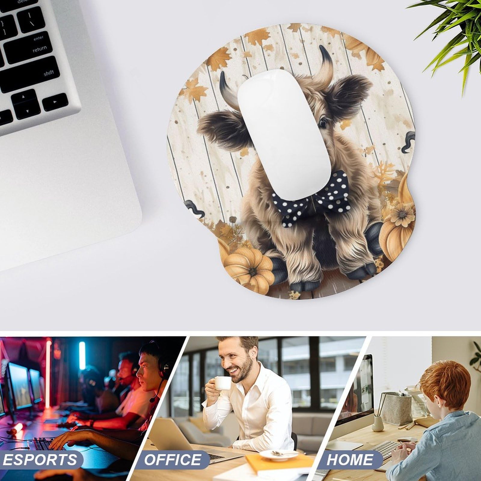 как выглядит Highland Cow Pumpkin Mouse Pad Computer Mouse Pad with Wrist Support Rest Non... фото