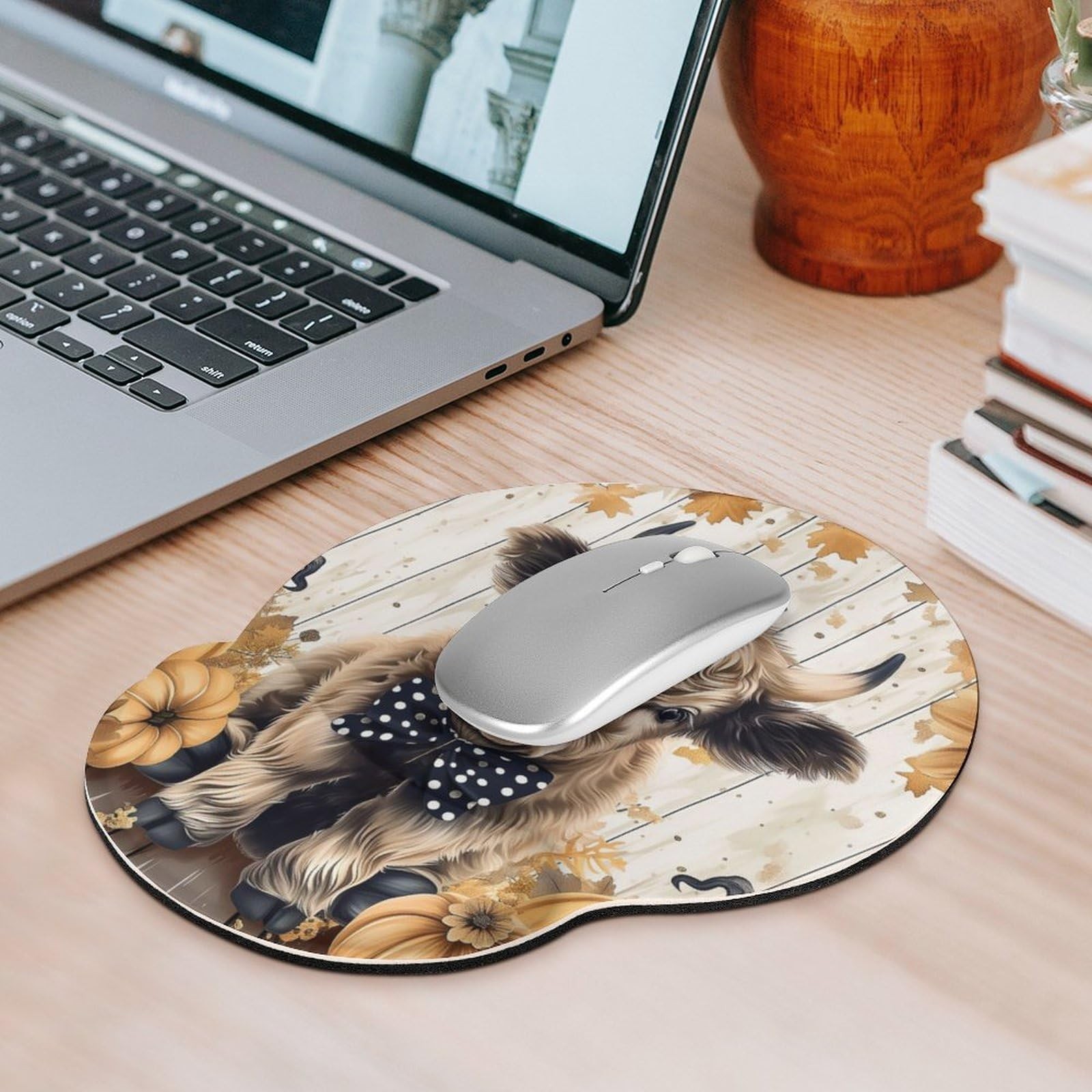 Highland Cow Pumpkin Mouse Pad Computer Mouse Pad with Wrist Support Rest Non...