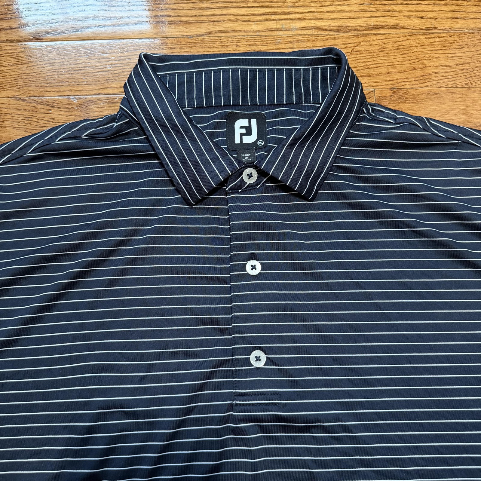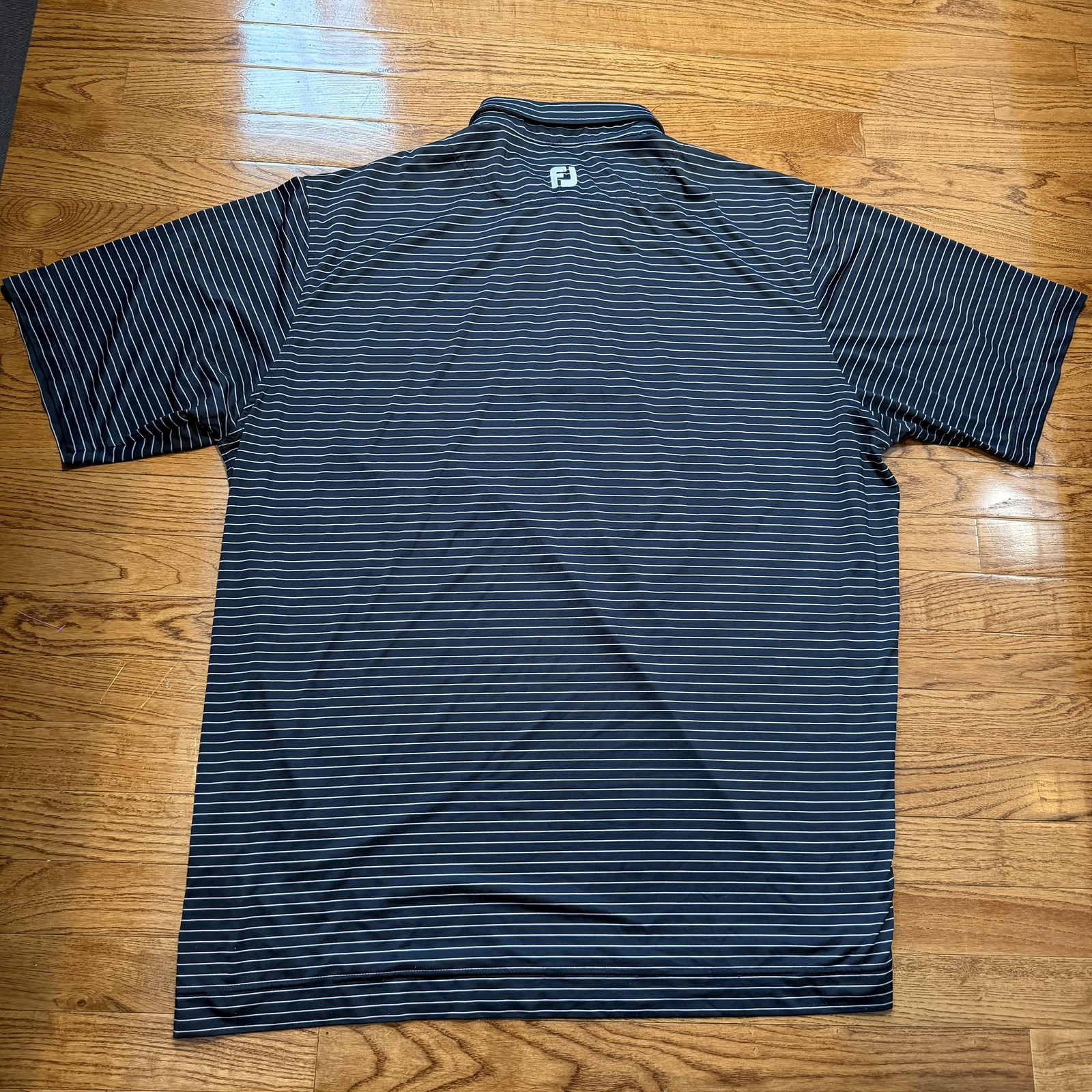FootJoy Polo Shirt Mens 2XL Blue Striped Golf Performance Stretch Short Sleeve