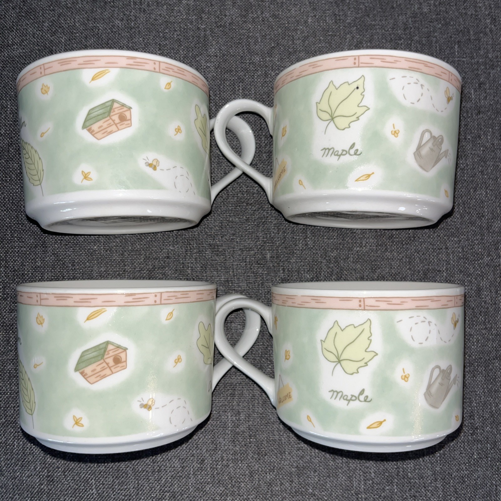 VTG Country Garden Coffee / Tea Set for 4 w/ sugar bowl and creamer.