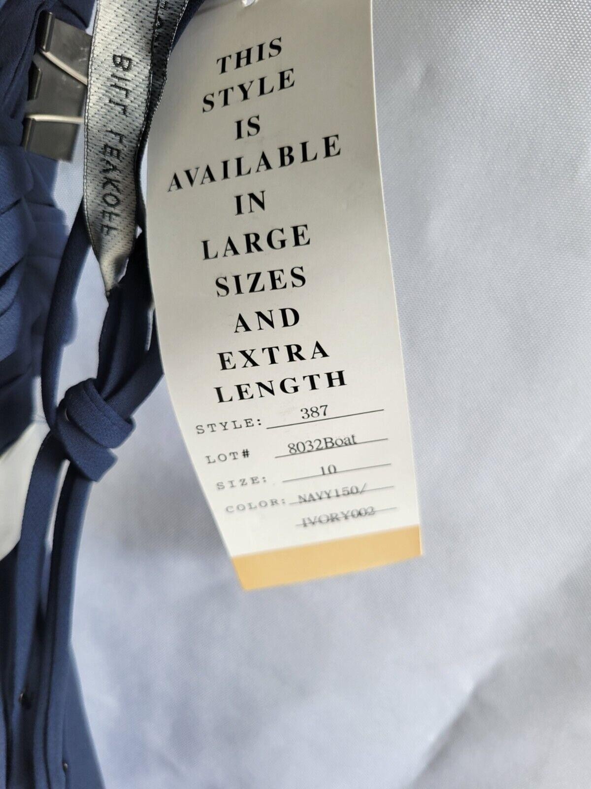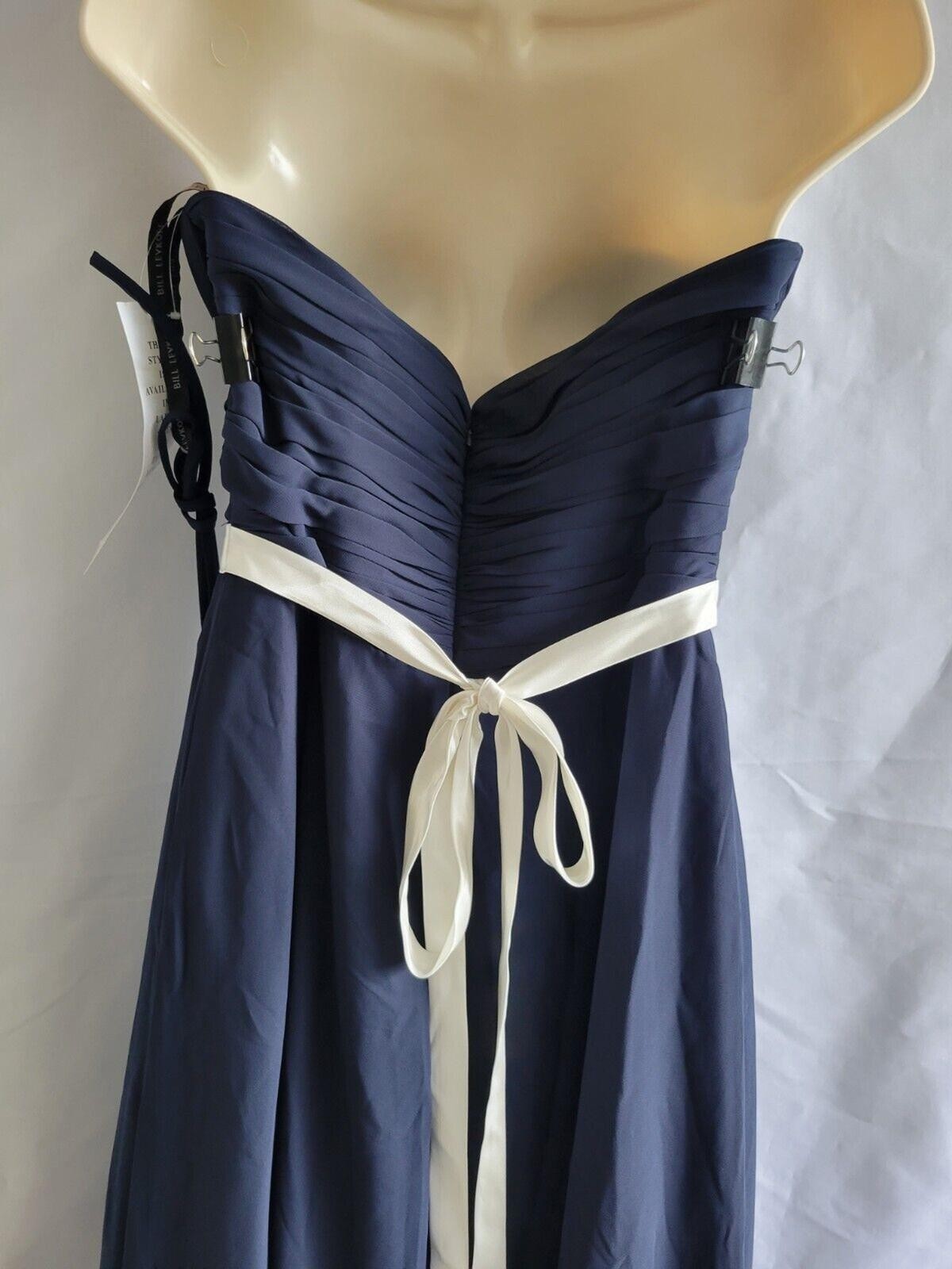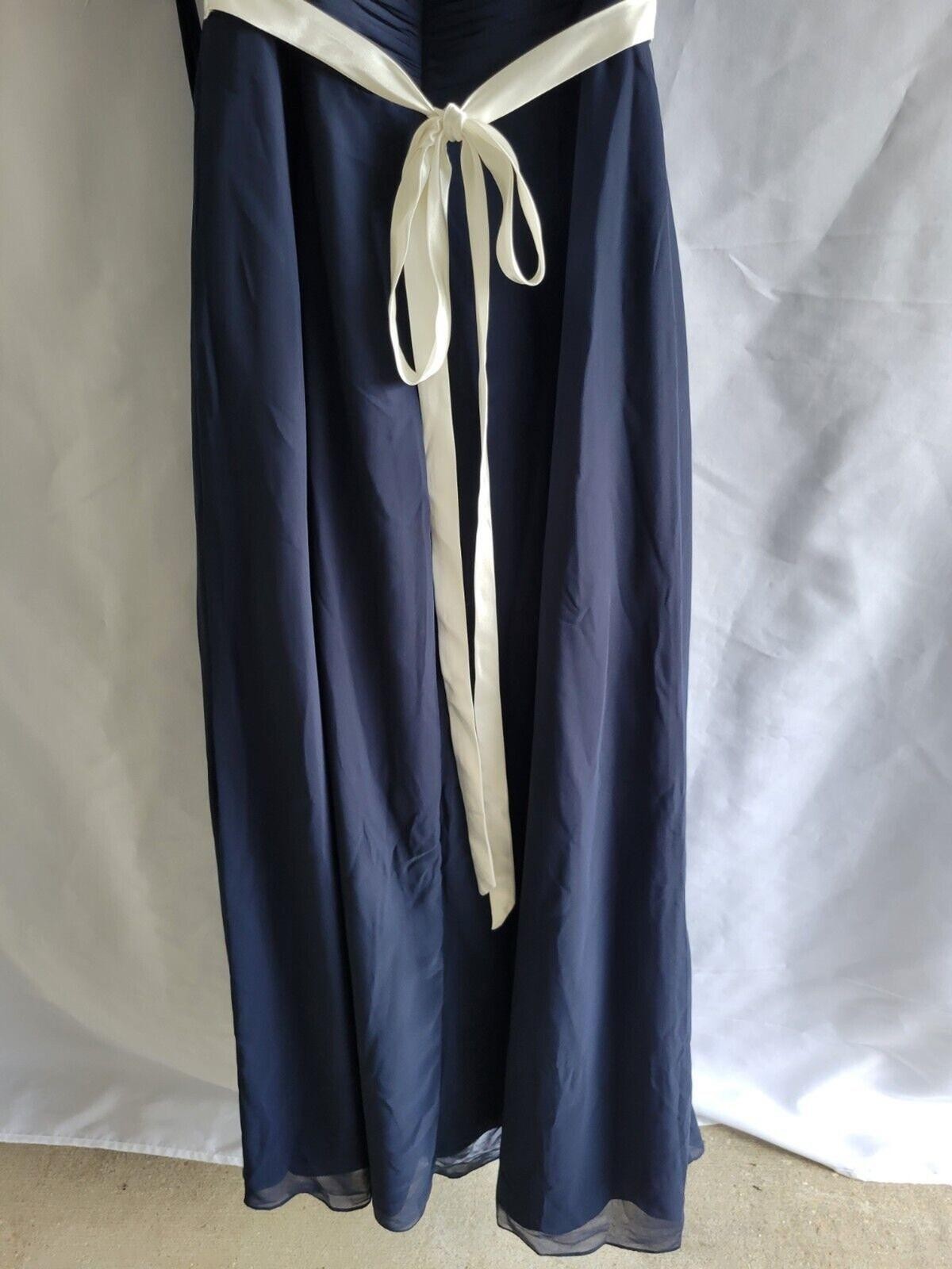 как выглядит Bill Levkoff Chiffon Sleeveless A-Line Strapless/Halter Navy Ivory New Sz. 10 фото