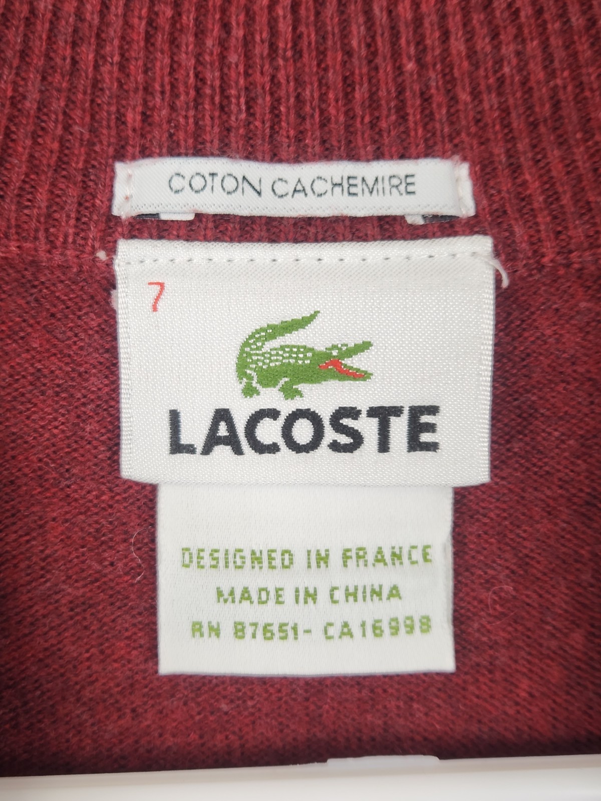 как выглядит Lacoste Sweater Mens 7 Red 1/4 Zip Pullover Lightweight Logo Cashmere Blend фото