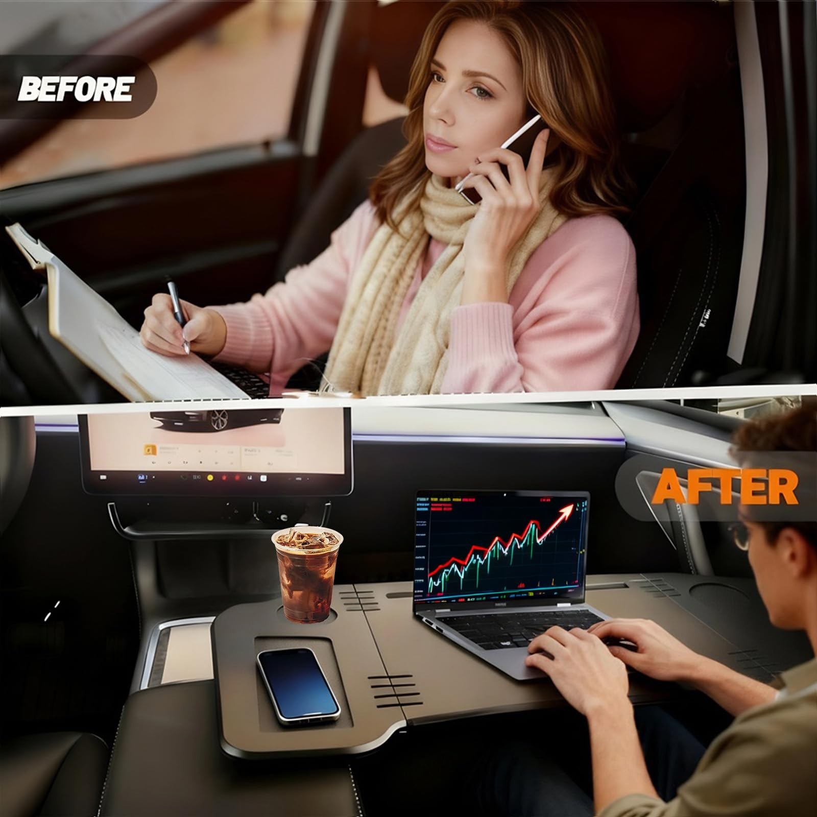2 in 1 Car Desk Steering Wheel Tray, Foldable Car Table Holder for Laptop Eat...