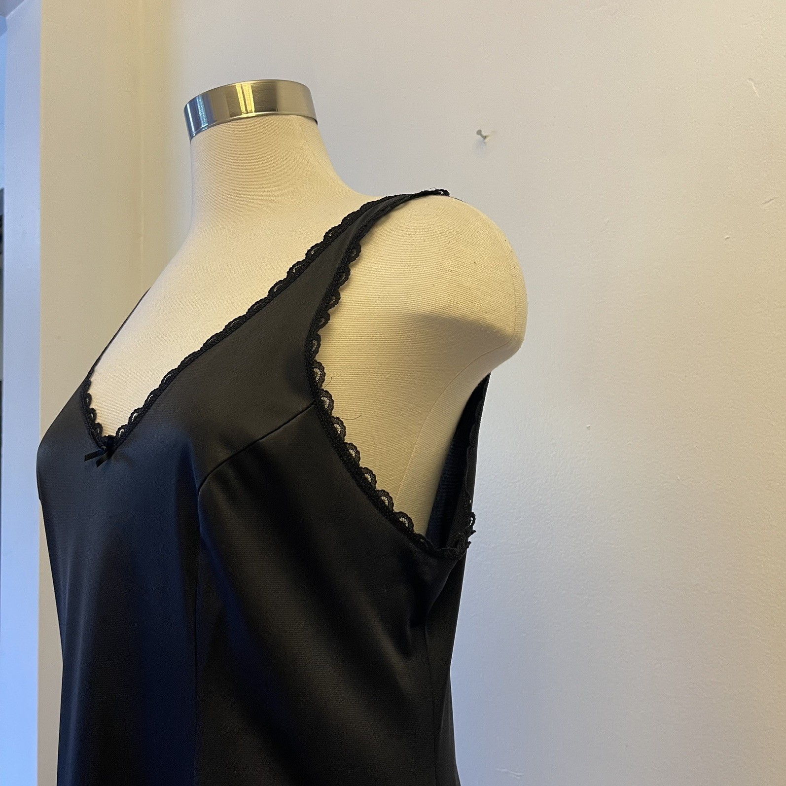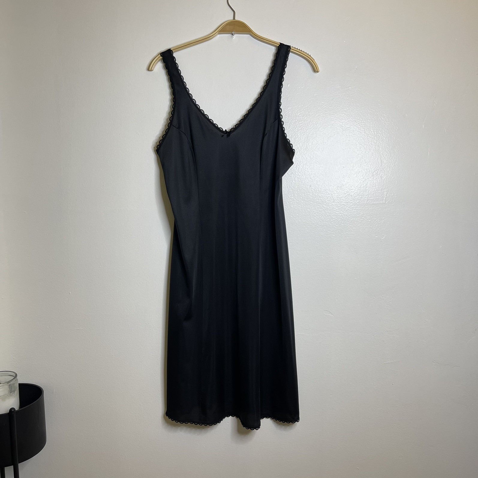 Vintage Warners Black Nylon Slip Dress Size 36 Perfect Measure Nightgown 55400
