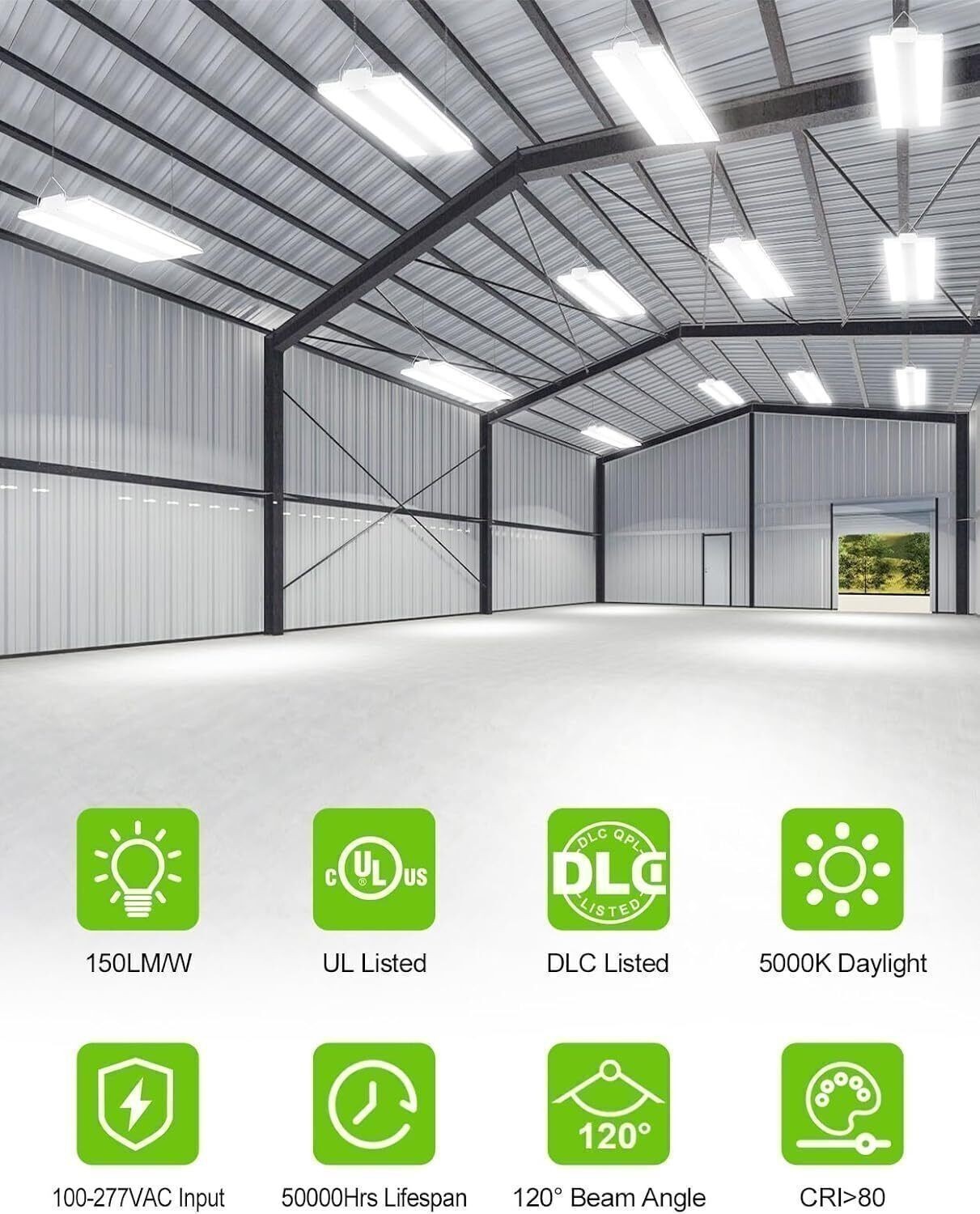 150W LED Linear High Bay Shop Light 22,500lm Commercial Hanging Warehouse Light