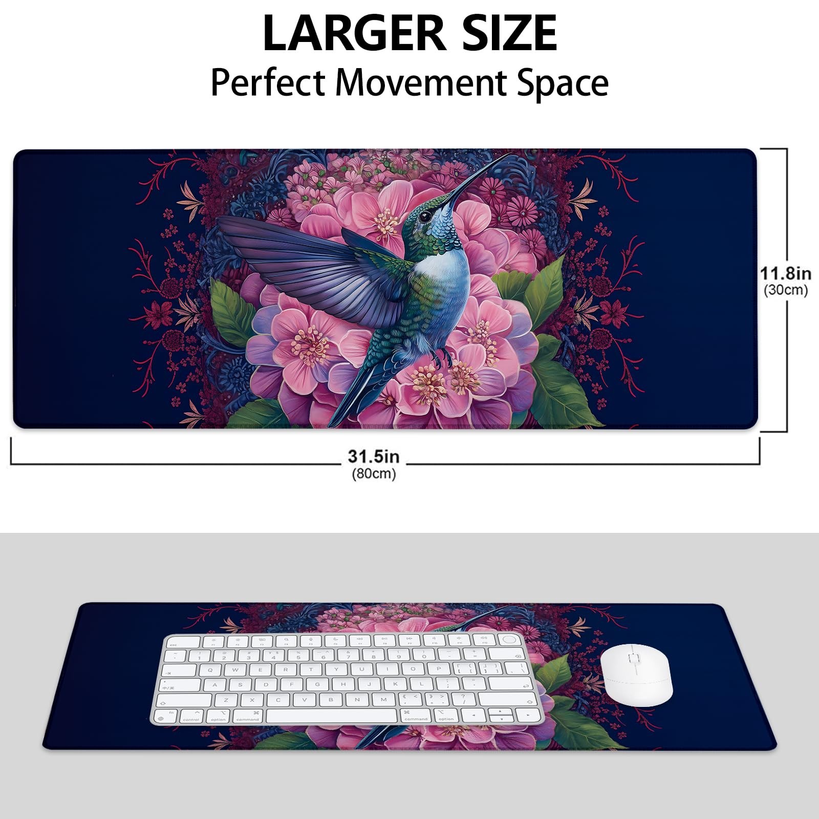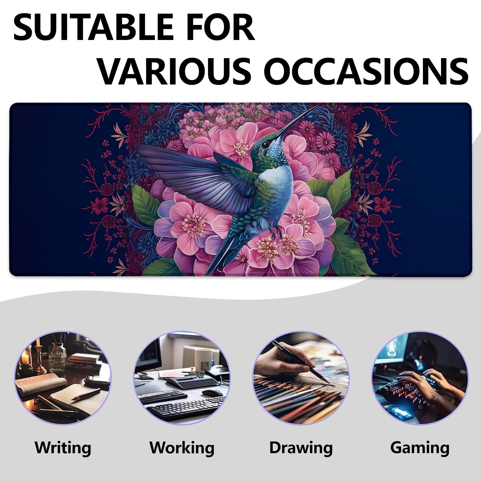 Floral and Hummingbird Large Mouse Pad, Gaming Mouse Pad, Keyboard Mat, Non-S...