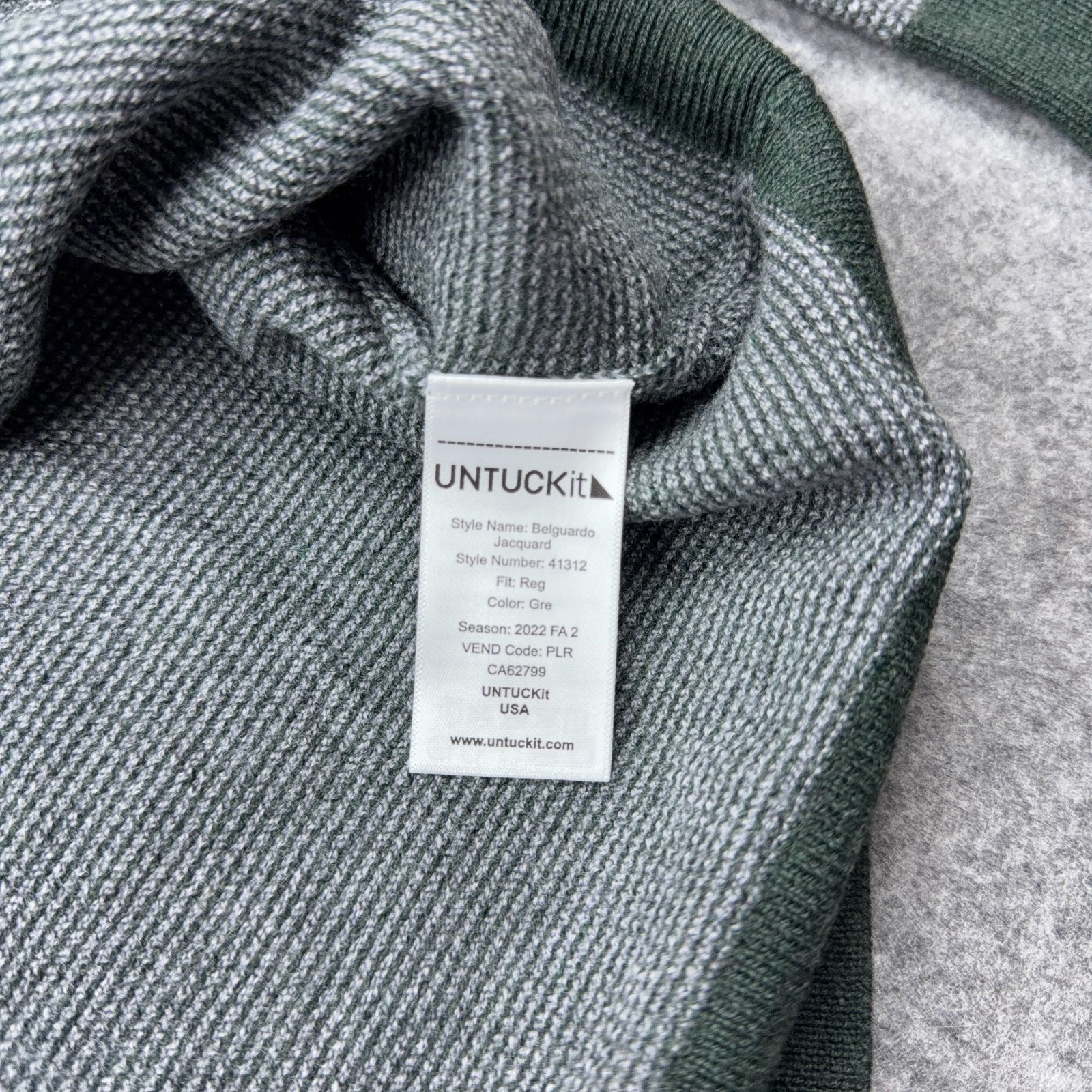 Untuckit Sweater Mens Large Gray Green Merino Wool Belguardo Jacquard 1/4 Zip