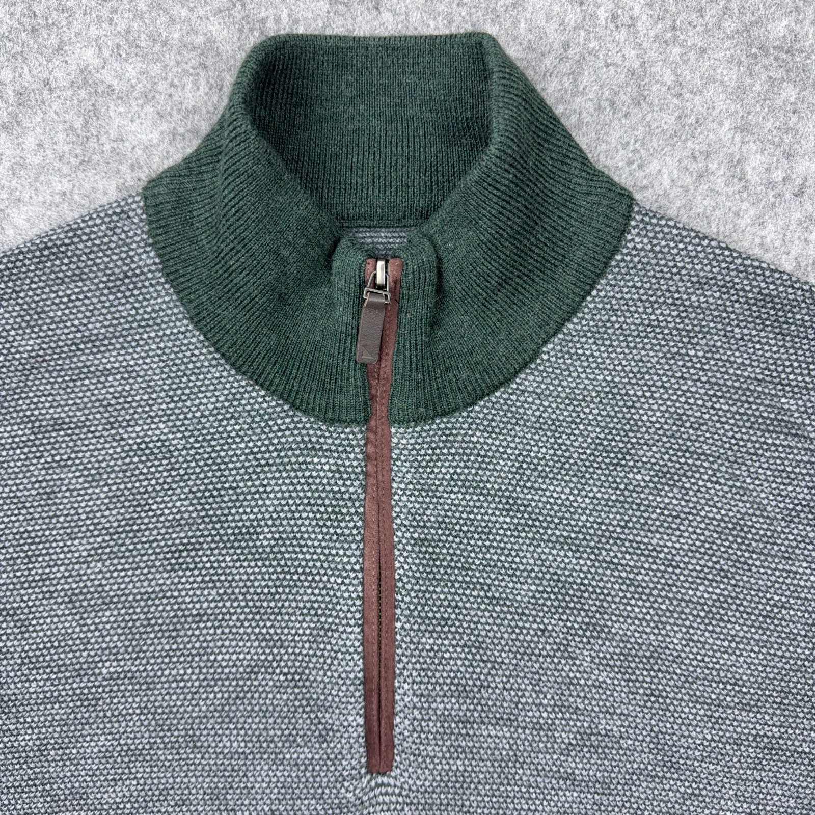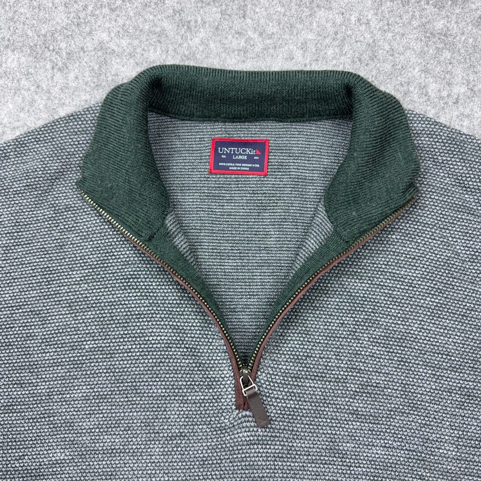 как выглядит Untuckit Sweater Mens Large Gray Green Merino Wool Belguardo Jacquard 1/4 Zip фото