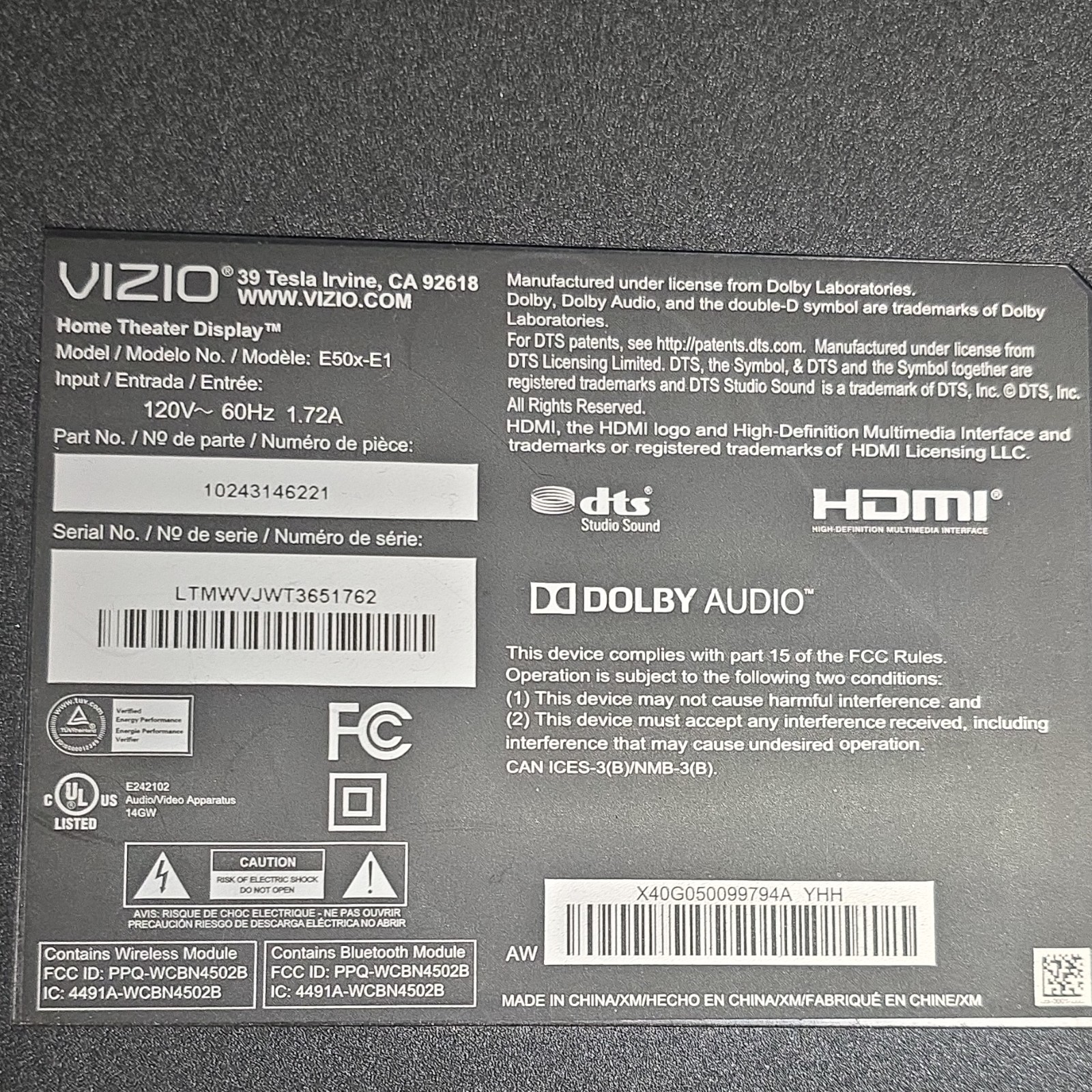 Модель: VIZIO E50x-E1
