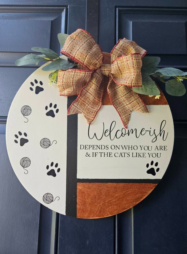 Welcome front door sign Home decor Handmade gift Dogs Cats funny Porch