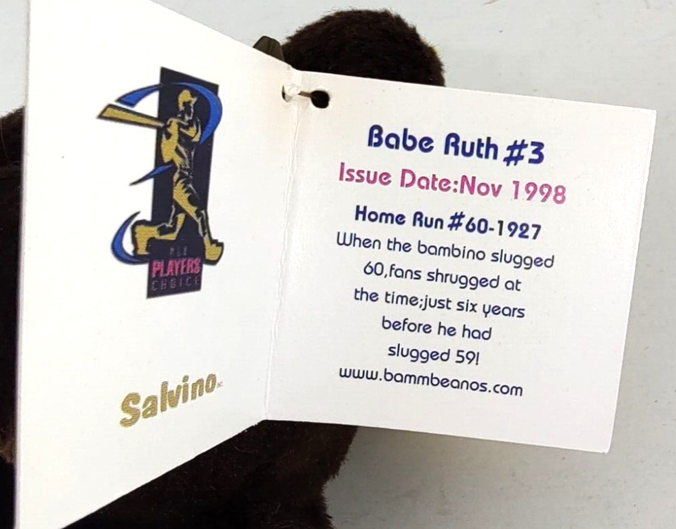 1998 Babe Ruth 3 Salvino's Bamm Beano's Plush Brown Home Run 0 1927 NWT
