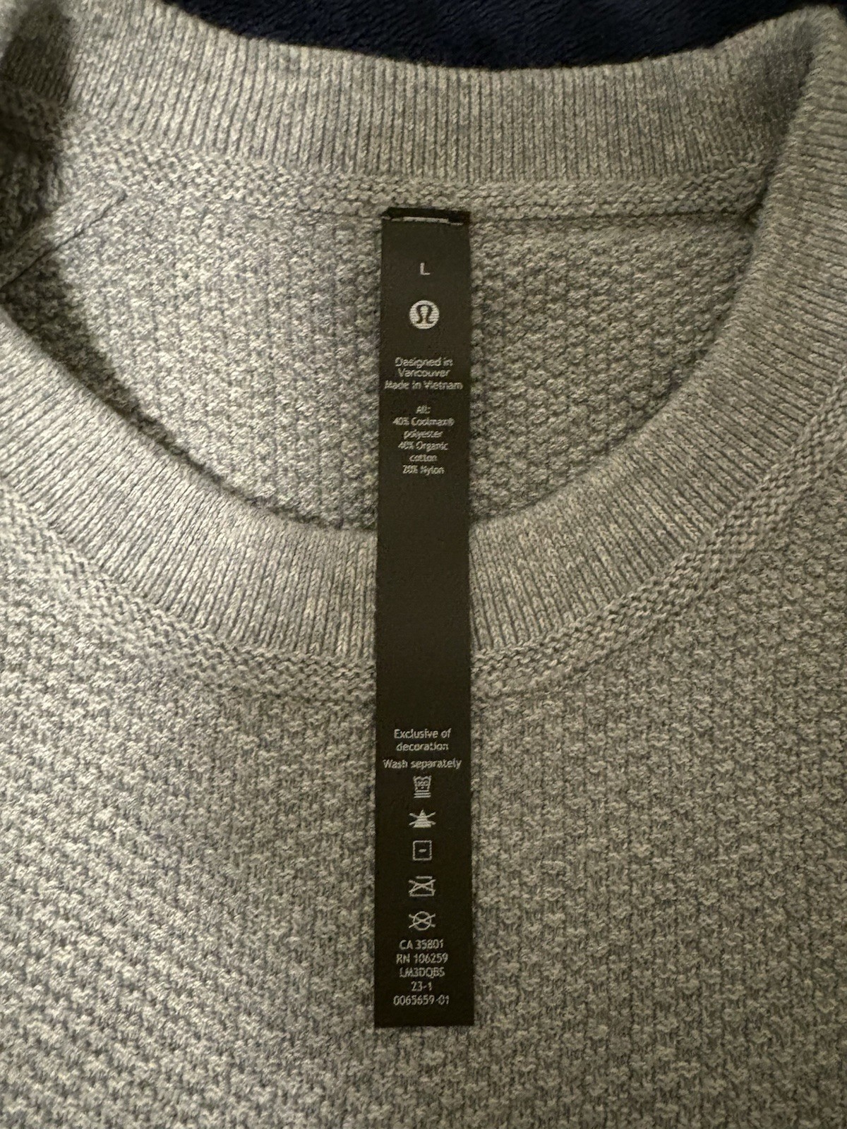как выглядит Lululemon Textured Crewneck Sweater Heathered Gray Mens Size Large фото