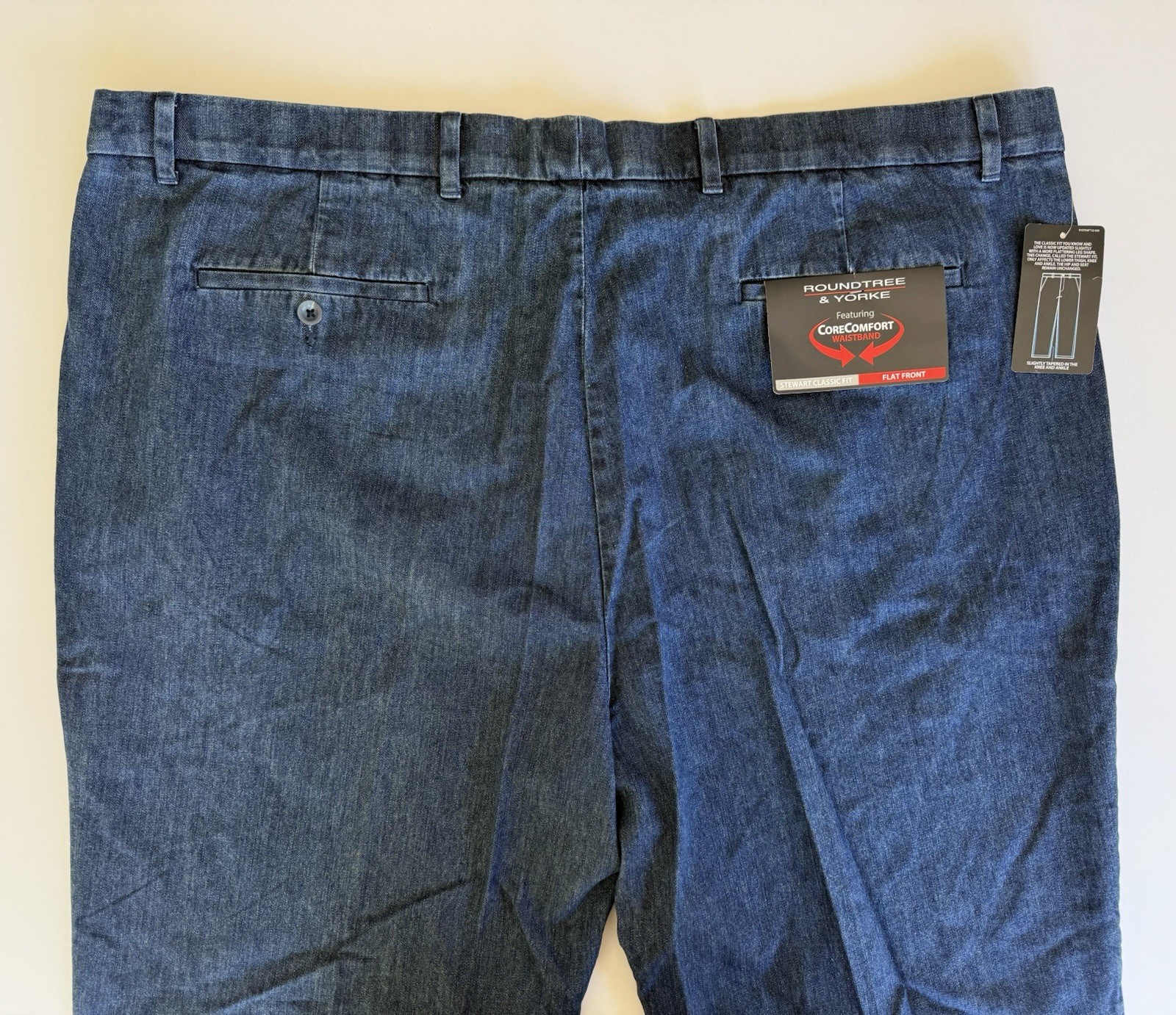 Roundtree Yorke Core Comfort Indigo Denim Jeans Pants Flat Front 48x32 NWT