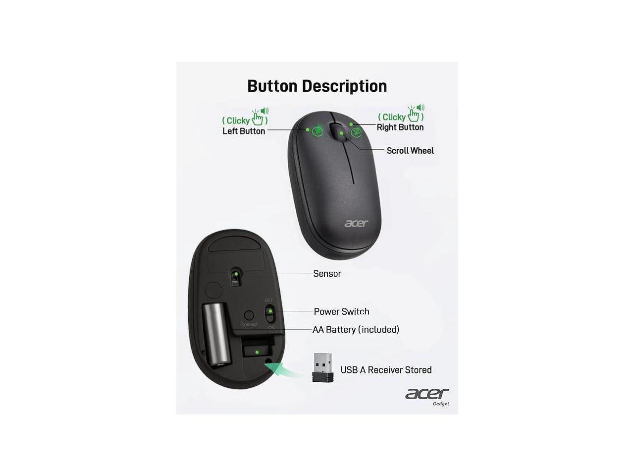 Acer Computer Mouse Wireless, 2.4G Slim USB Wireless Mice with USB-A Receiver, 1