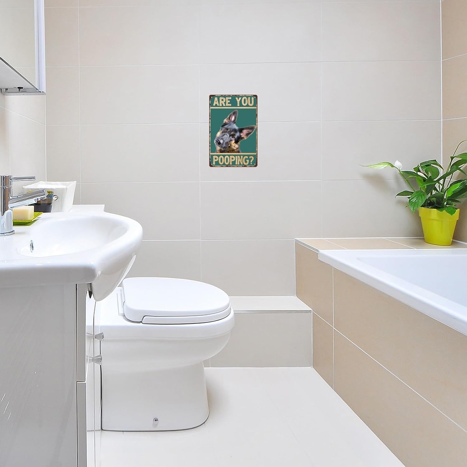 • German Shepherd Dog Are You Pooping Funny Tin Metal Signs Home D cor 8x12 Bathro