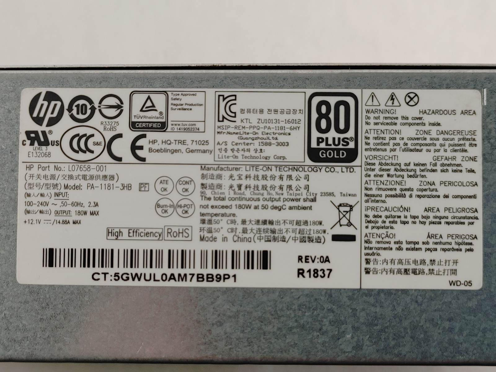 Lot of 10 HP ProDesk 400 G5 4 4 Pin 180W Desktop Power Supply L07658-001