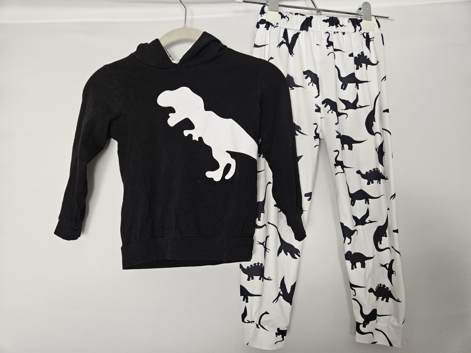 как выглядит Black White Dinosaur Print Hooded Long Sleeve Top Pants Set Boys 6-7 фото
