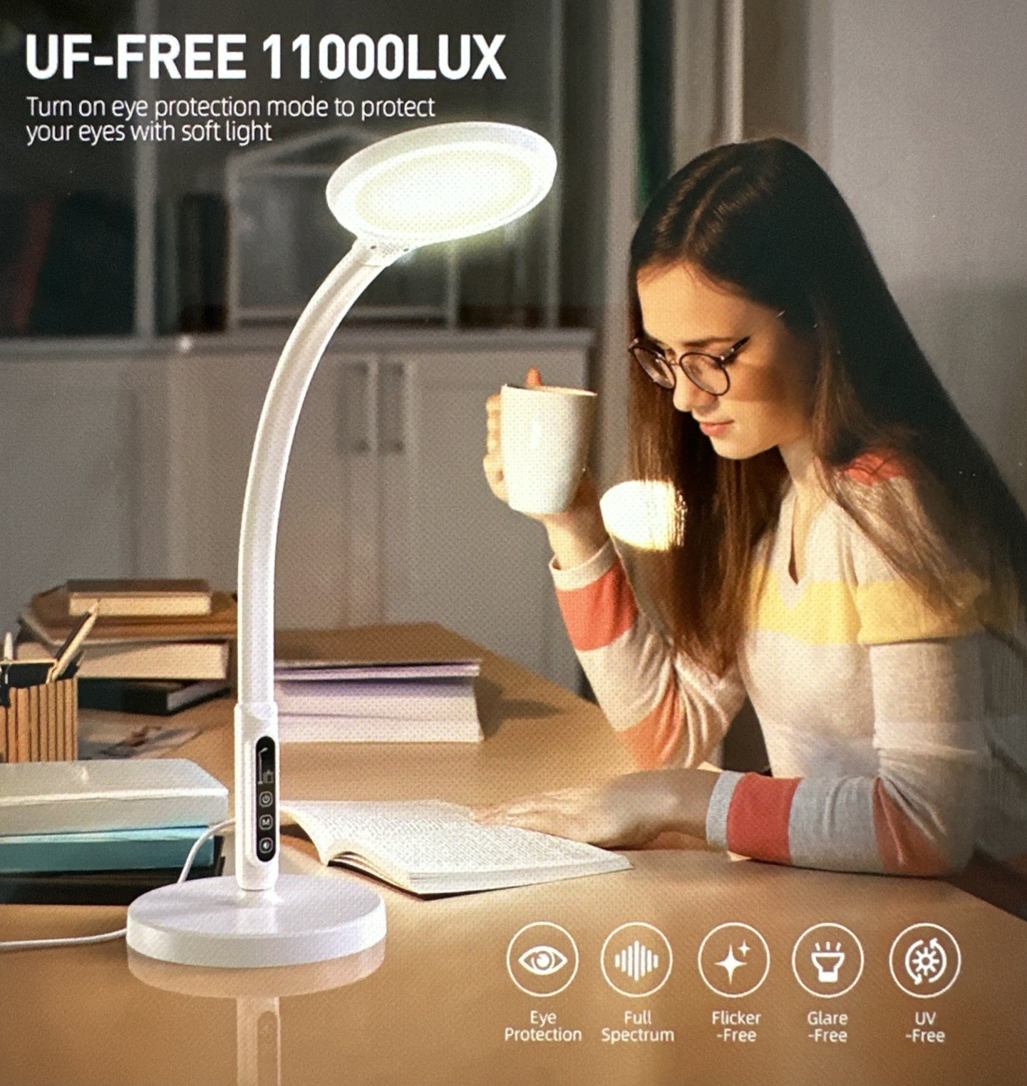 11000 Lux UV-Free Light Therapy Lamp, 10 Brightness Levels, Floor or Table