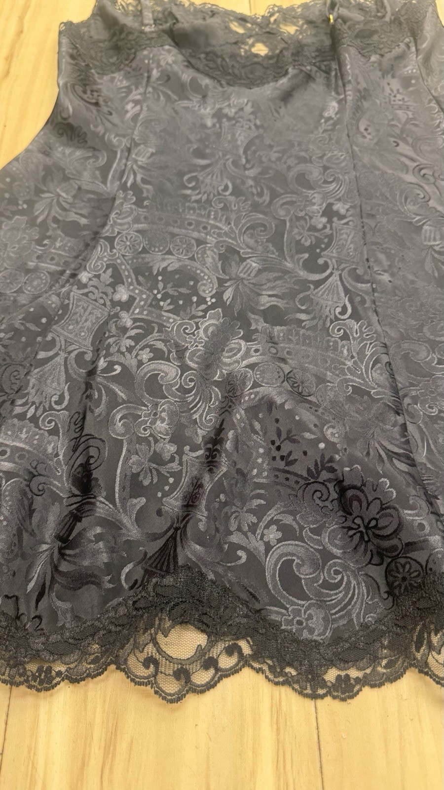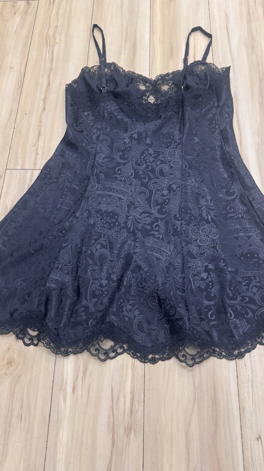 как выглядит VTG 1991 Victoria Secret Gold Label Med. Black Chemise Slip Dress Nightie Lace фото