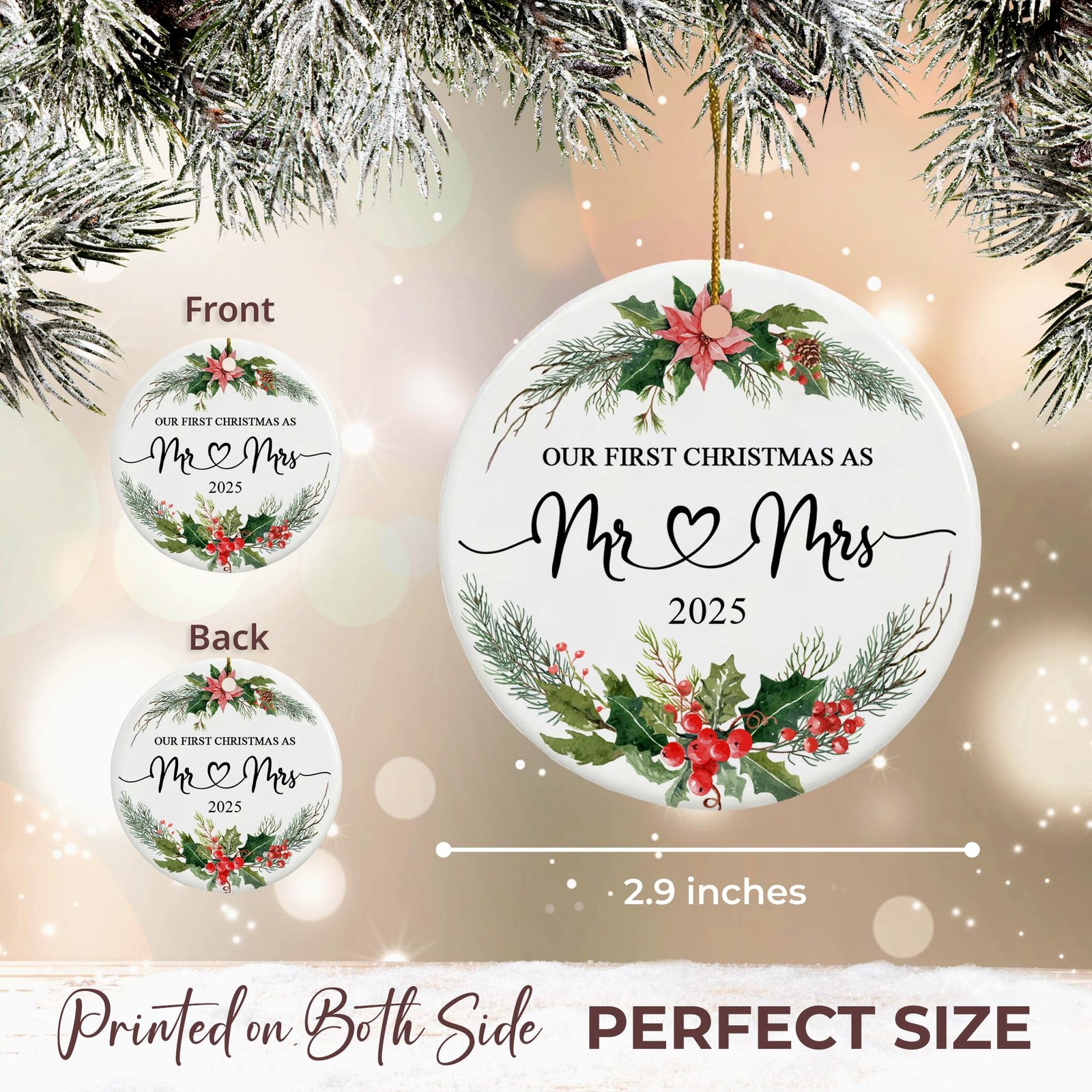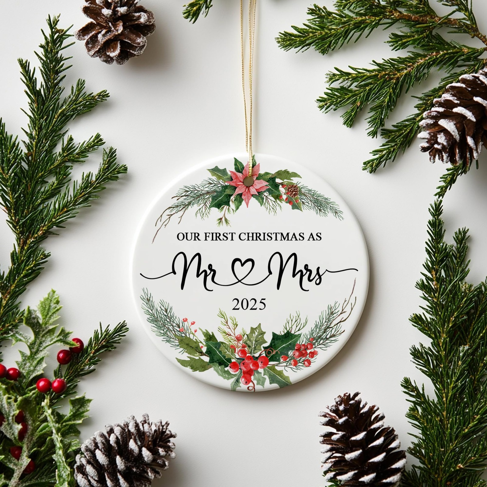 Our First Christmas as Mr and Mrs Ornament 2025 Ceramic 1st Married Christm...