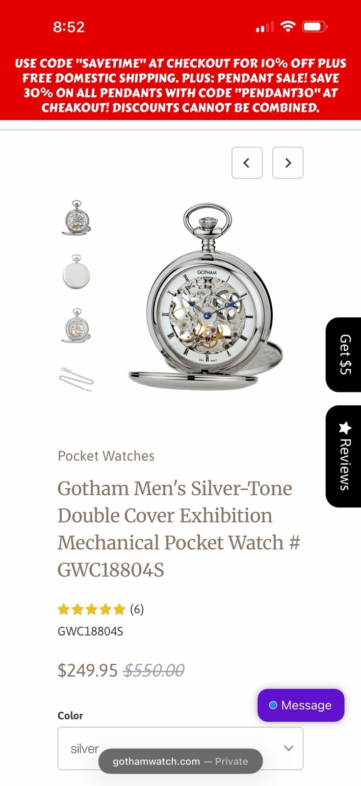 как выглядит Gotham Mens DarkSilver-Tone Double Cover Exhibition Mechanical Pocket Watch фото