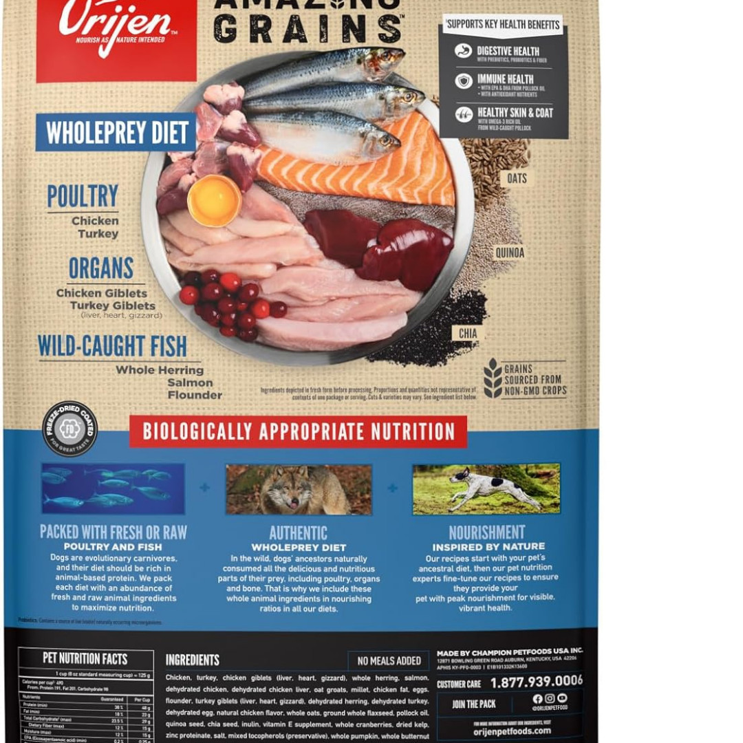 как выглядит ORIJEN Amazing Grains High Protein Dry Dog Food Original Recipe 22.5lb Bag фото