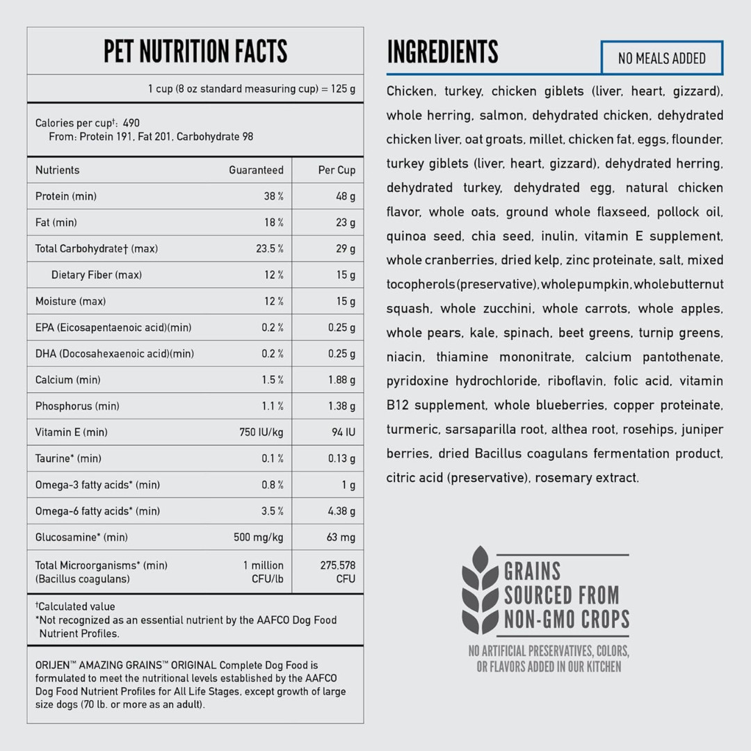 ORIJEN Amazing Grains High Protein Dry Dog Food Original Recipe 22.5lb Bag