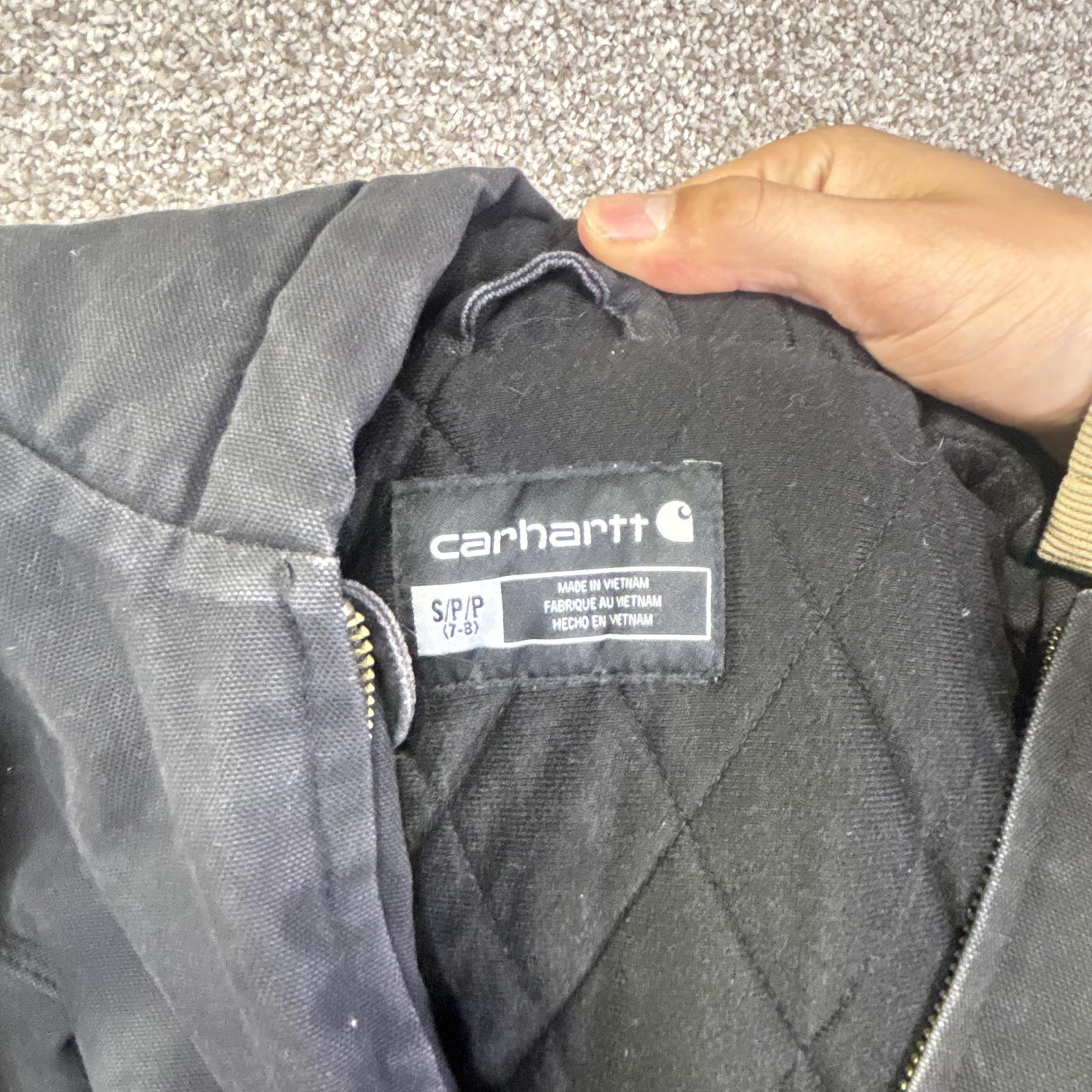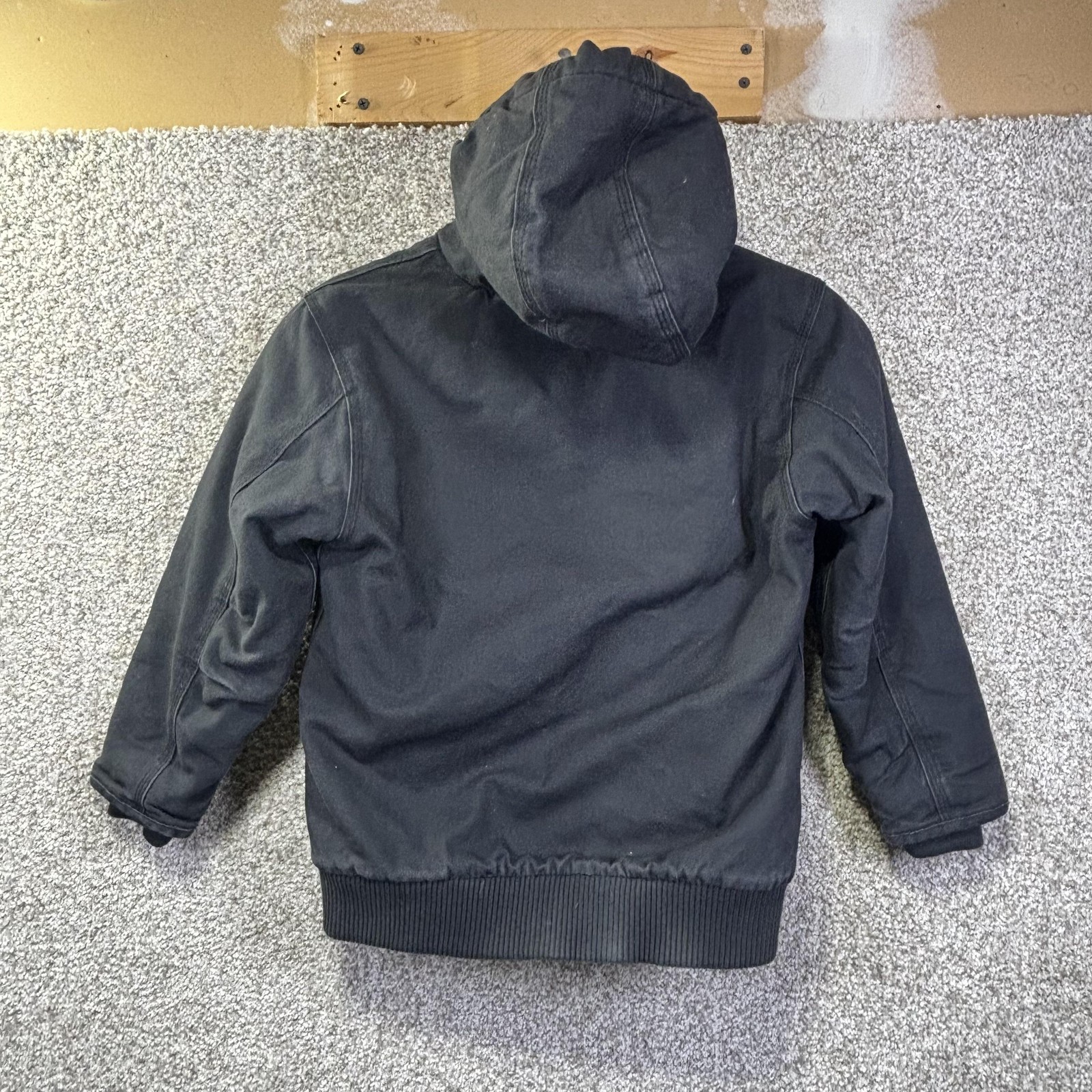 как выглядит Carhartt Jacket Kids 7-8 Black Hooded Canvas Quilted Lined Heavy Workwear Warm фото