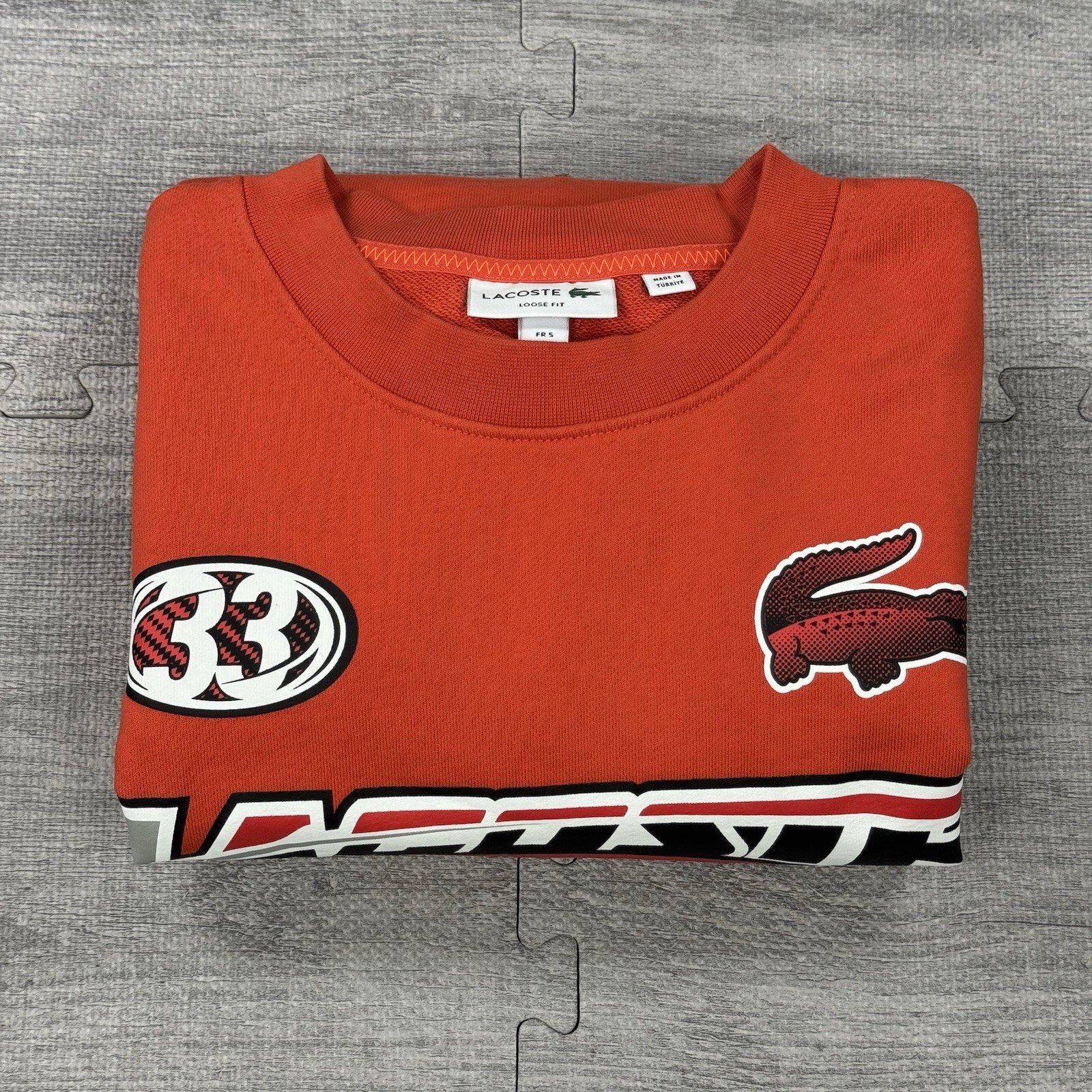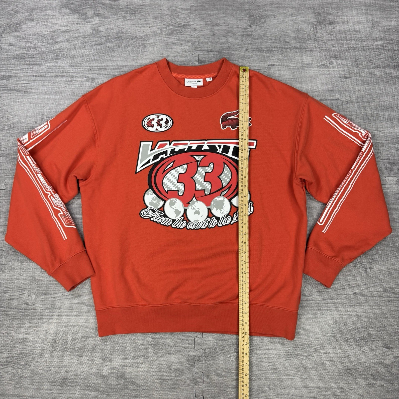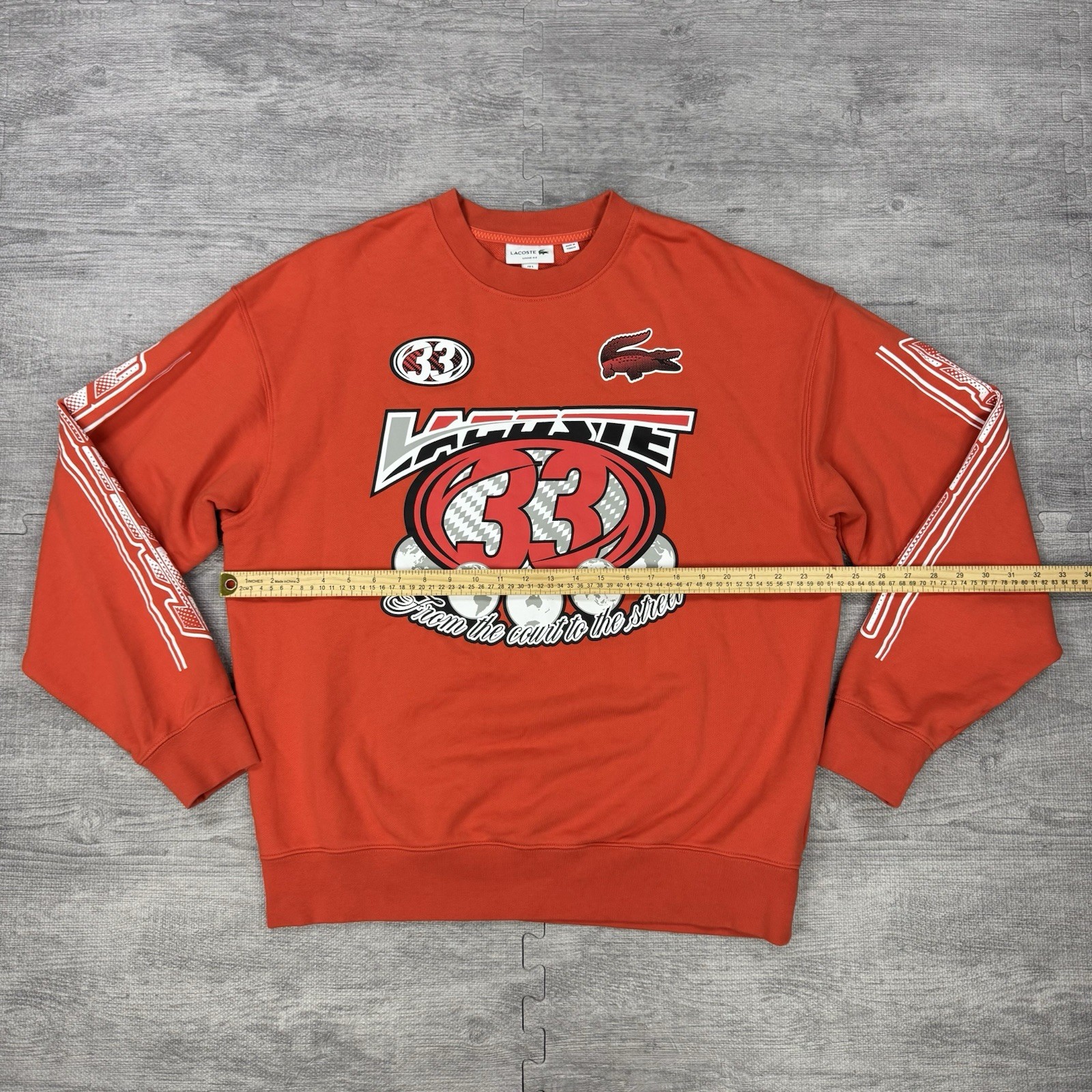 Lacoste Sz L Orange From The Court To The Street Loose Crewneck Sweatshirt