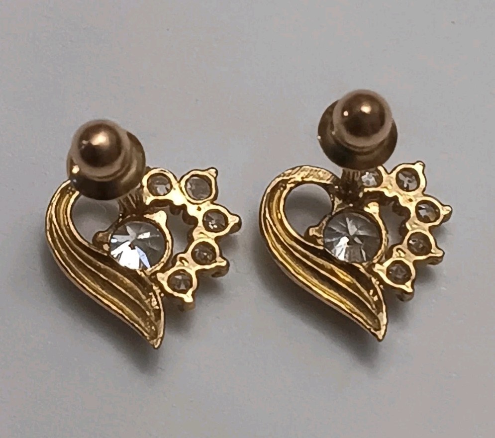 14k Gold Heart Cz Earrings Stud Post Screwback Earrings Tested Valentine's Day