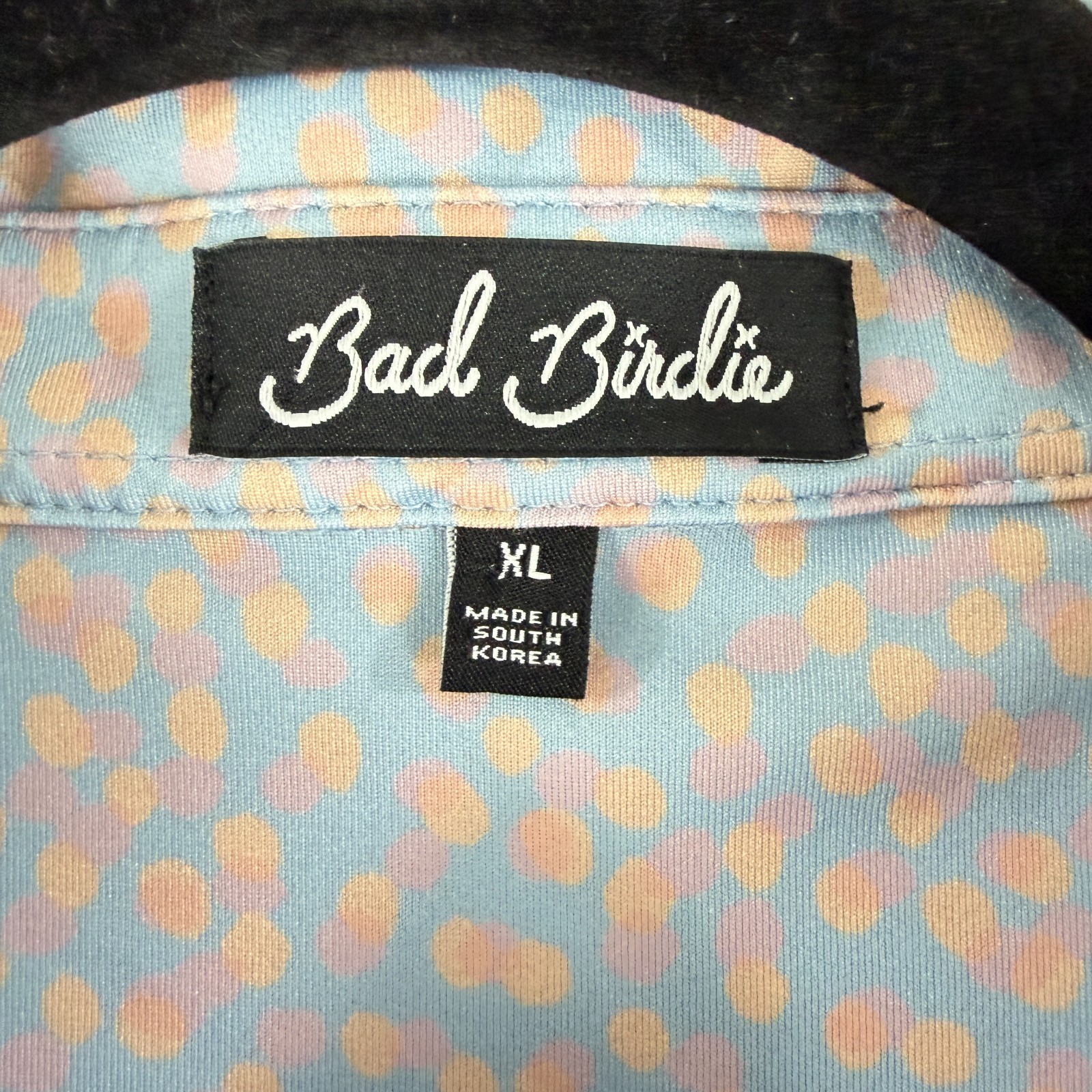 Bad Birdie Infinity Performance Golf Polo Shirt Mens Size XL Blue Dot Print SS